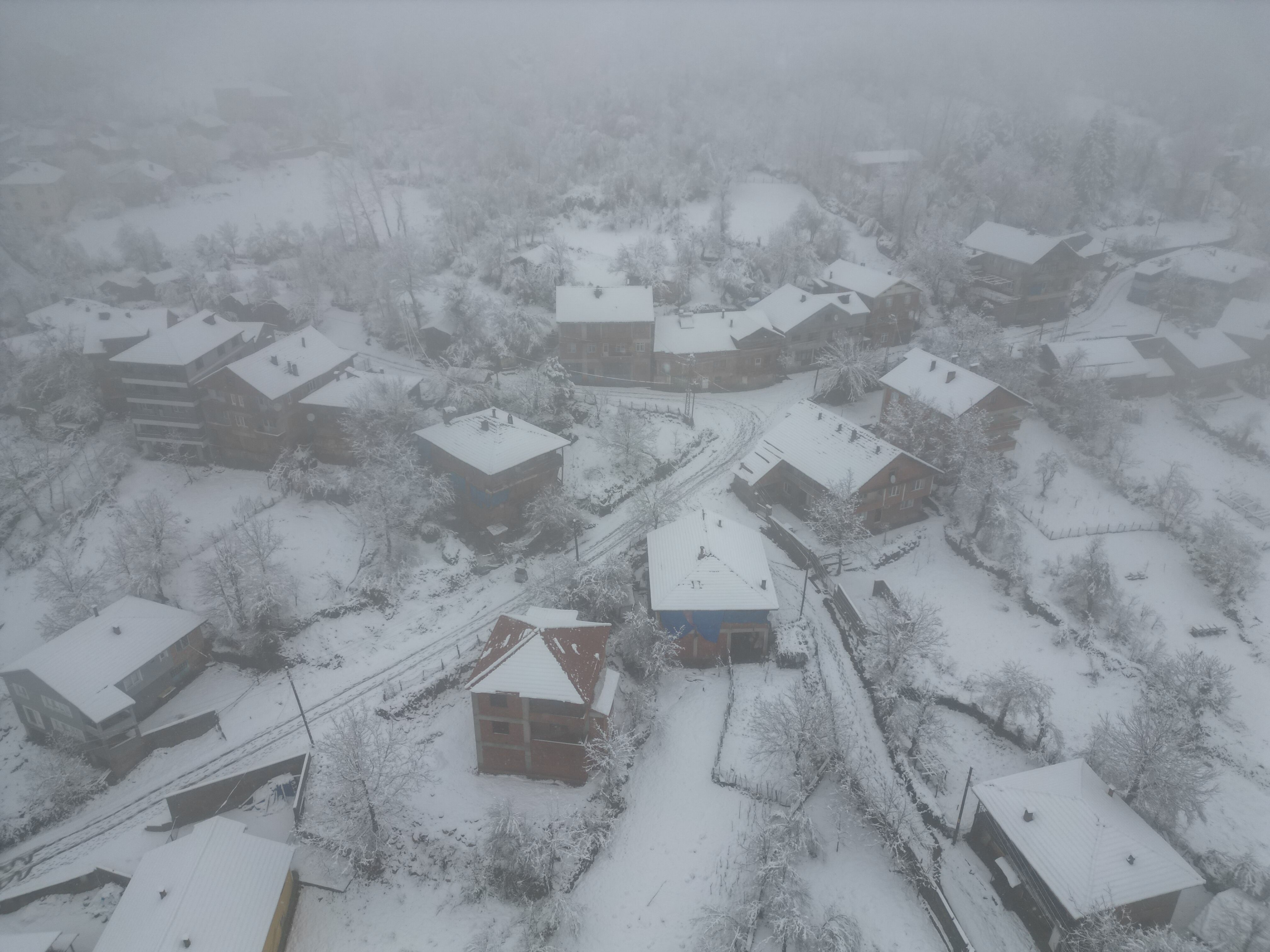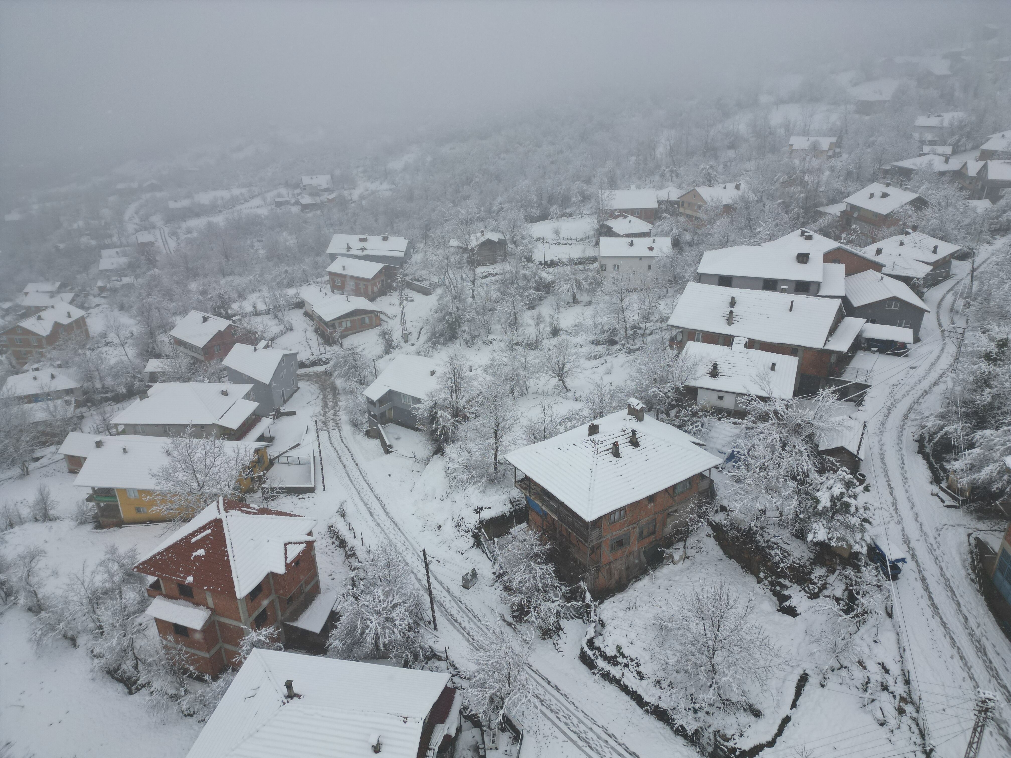 BARTIN'ın yüksek kesimlerinde kar yağışı etkili oldu. Küre Dağları Milli Parkı'nın eteklerinde bulunan köyler, beyaz örtüyle kaplandı. Kar manzarası dron ile görüntülendi.
