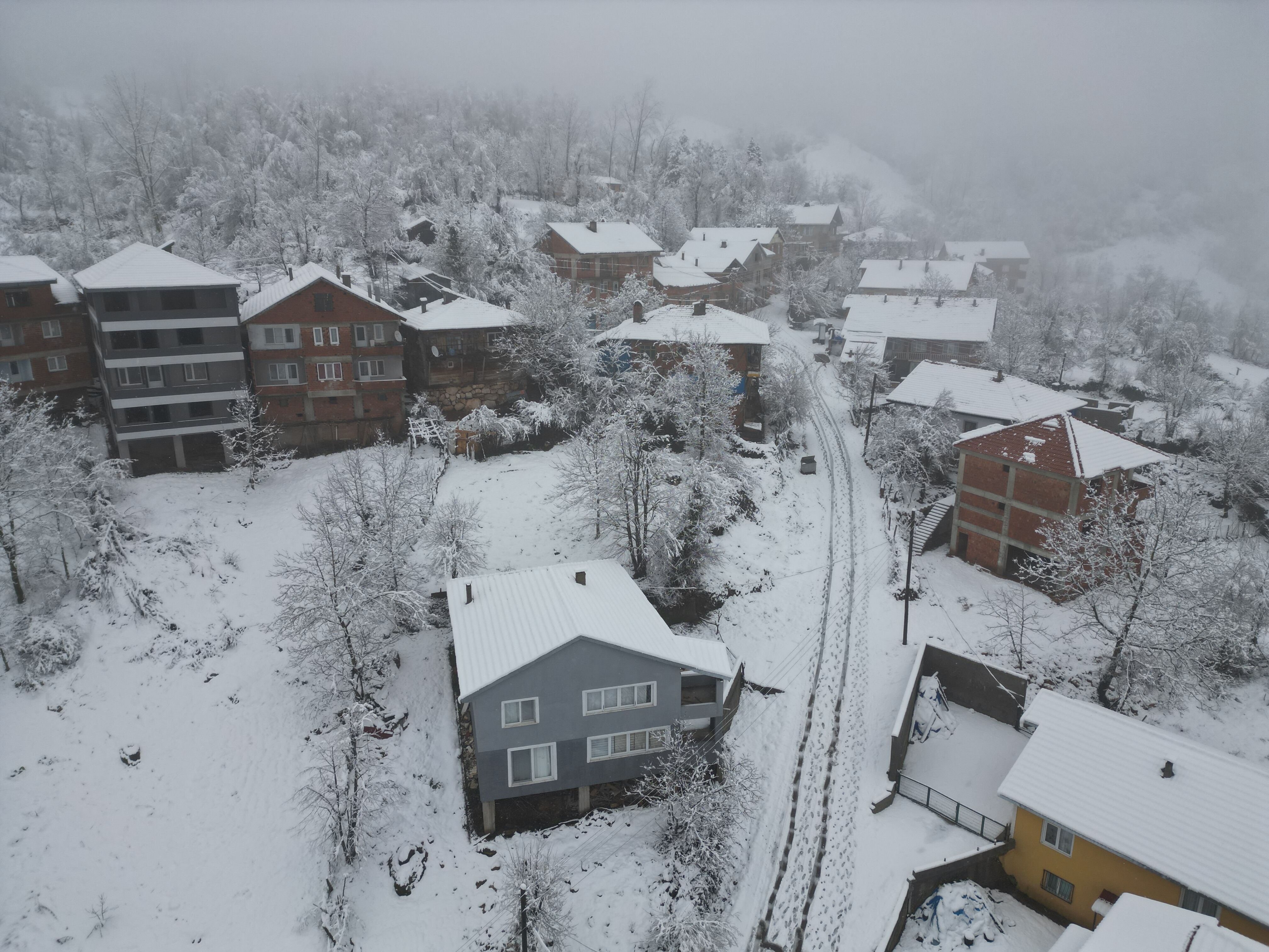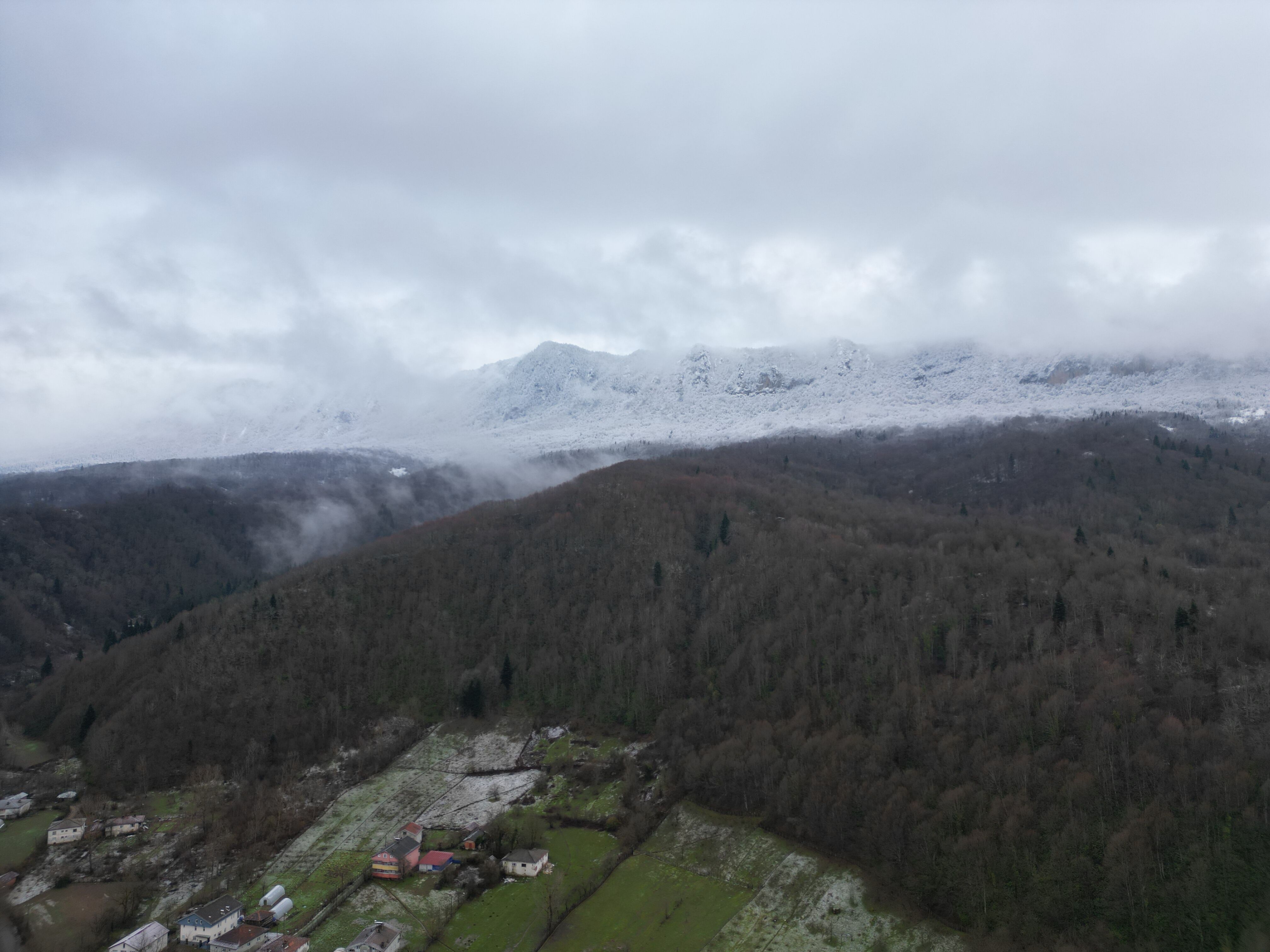 Kar yağışının etkili olduğu Küre Dağları Milli Parkı’nın bazı bölümlerinde eşsiz manzaralar ortaya çıkarken; eteklerinde bulunan Sıralı, Ören ve Söğütlü köylerindeki kar manzarası dron ile görüntülendi.