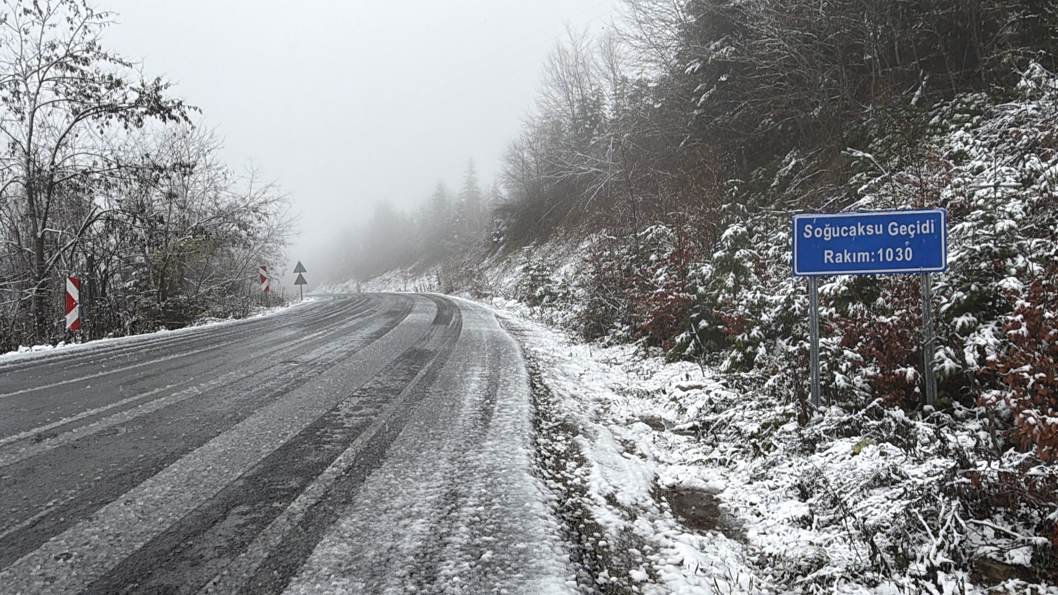 Bartın-Kastamonu kara yolunun 1030 rakımlı Soğucaksu Geçidi’nde, dün gece saatlerinde kar yağışı etkili oldu.