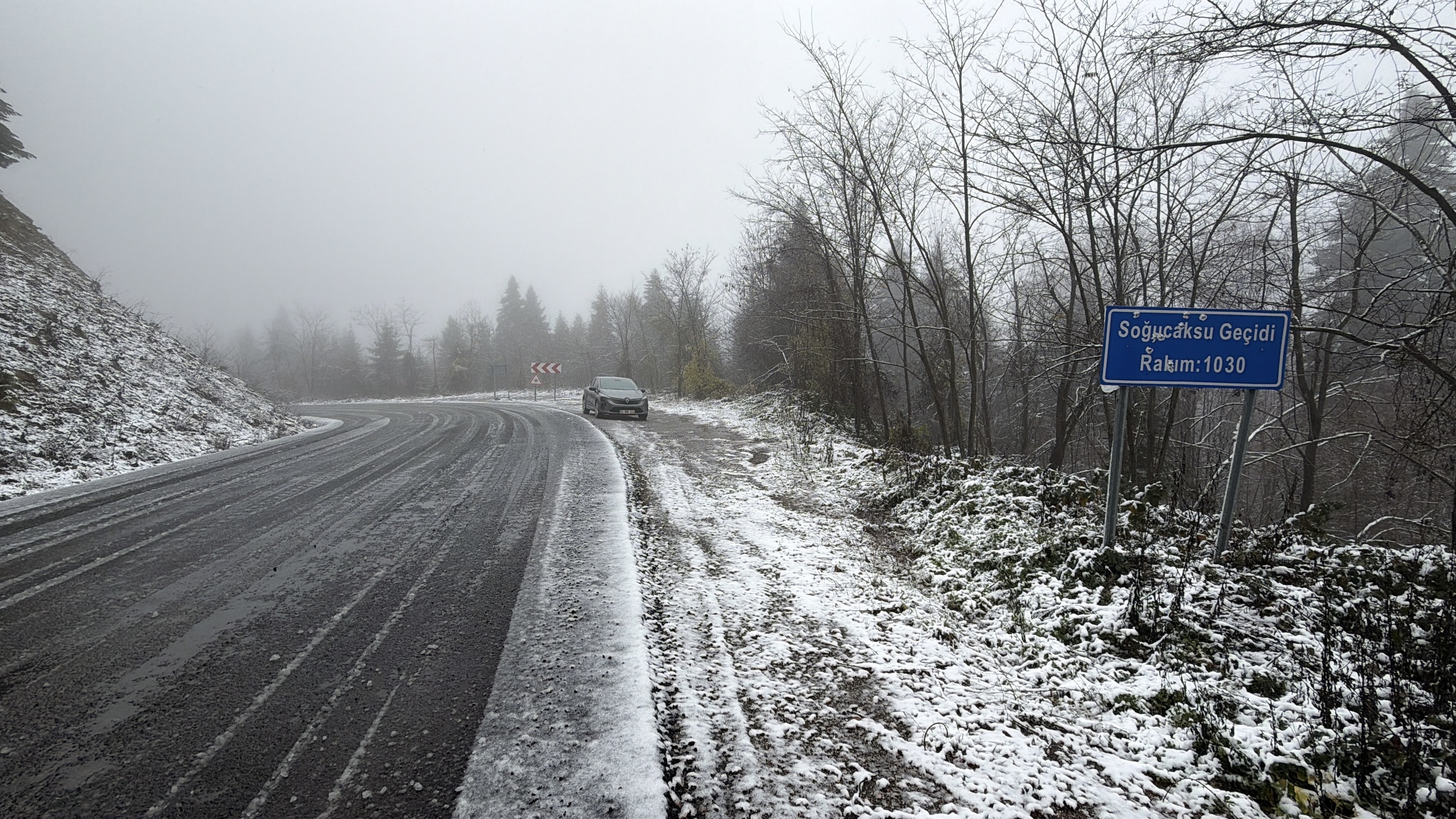 Yağış nedeniyle Karabük-Bartın kara yolunda 1030 rakımlı Ahmetusta Geçidi ve Safranbolu’nun 1700 rakımlı Ömür Ahmet Kıran mevkisinde araçlar düşük hızda ilerledi.