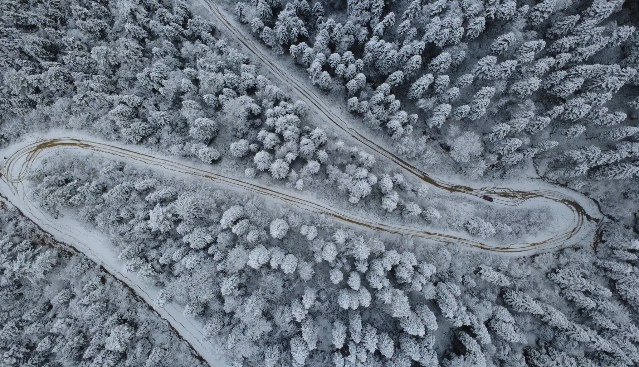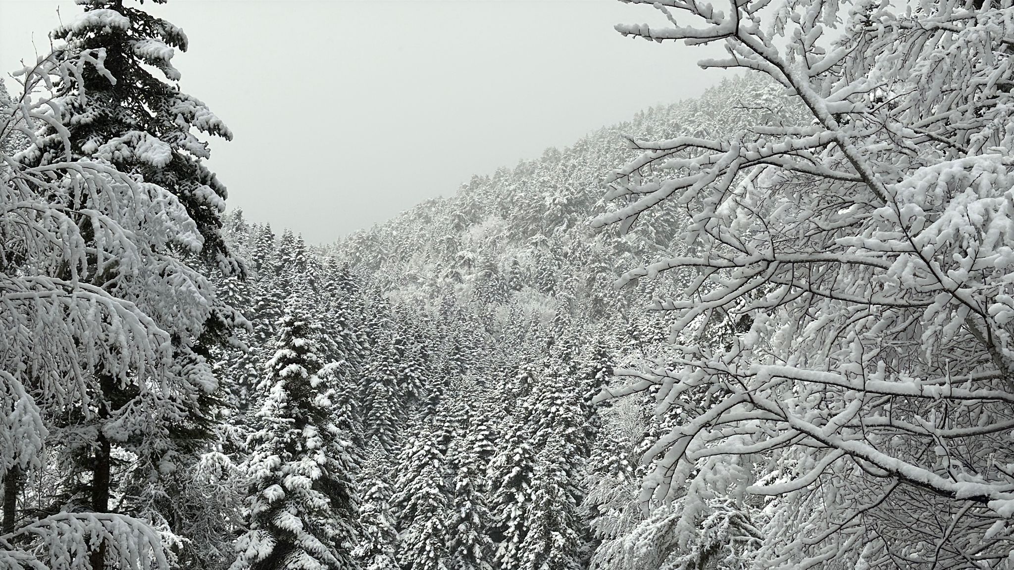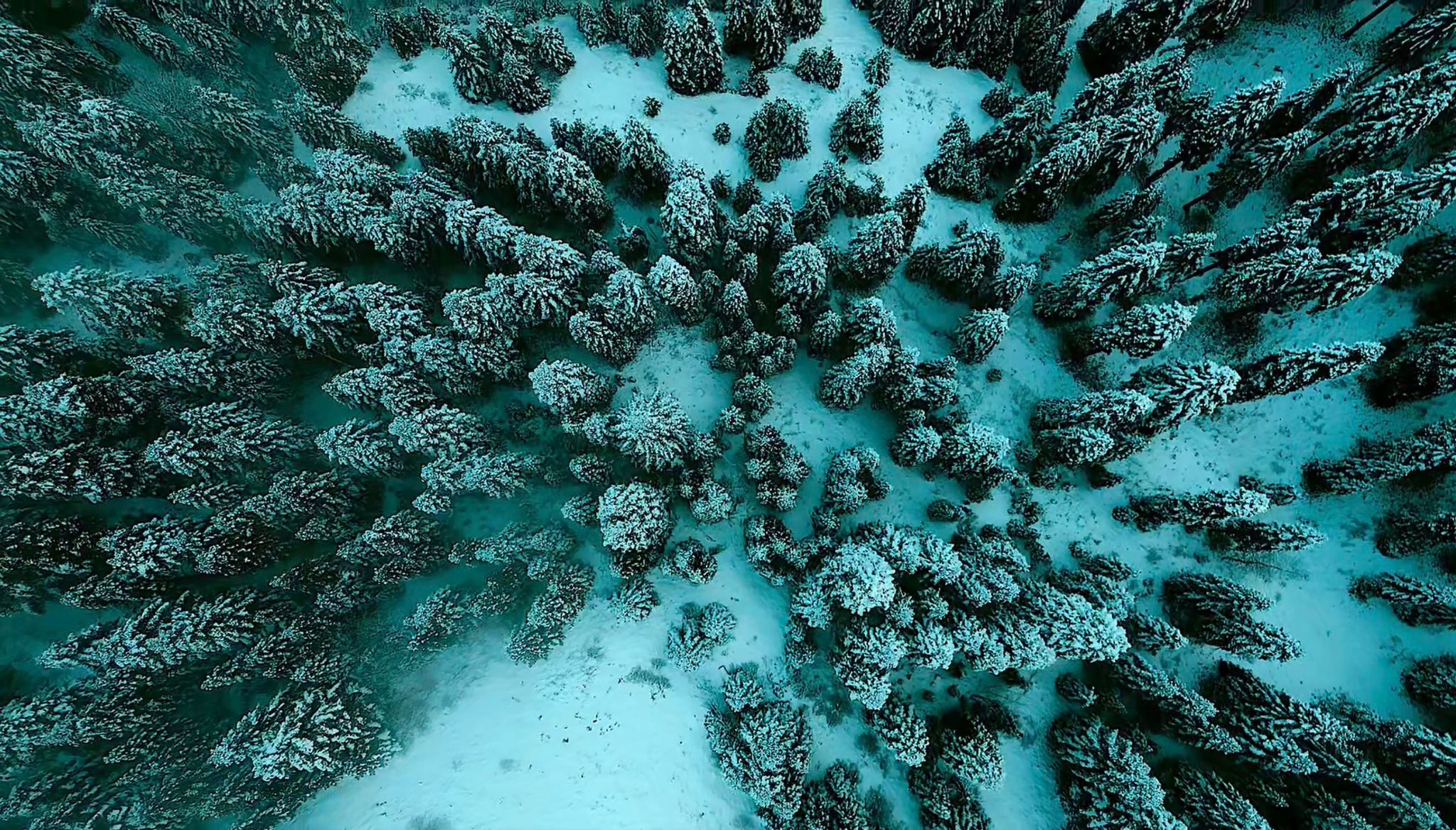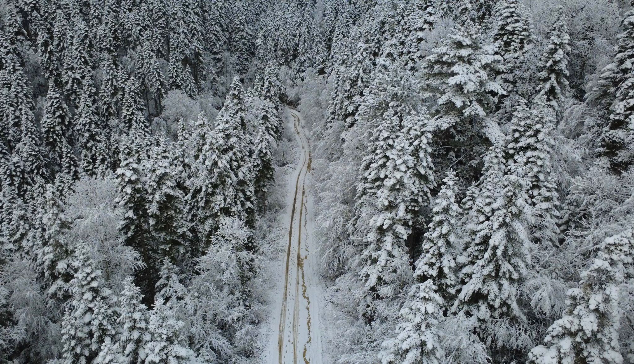 Ömür Ahmet Kıran mevkisinde kar yağışı ile birlikte çam ağaçları eşsiz manzaralar oluşturdu. Manzara dron ile görüntülendi.