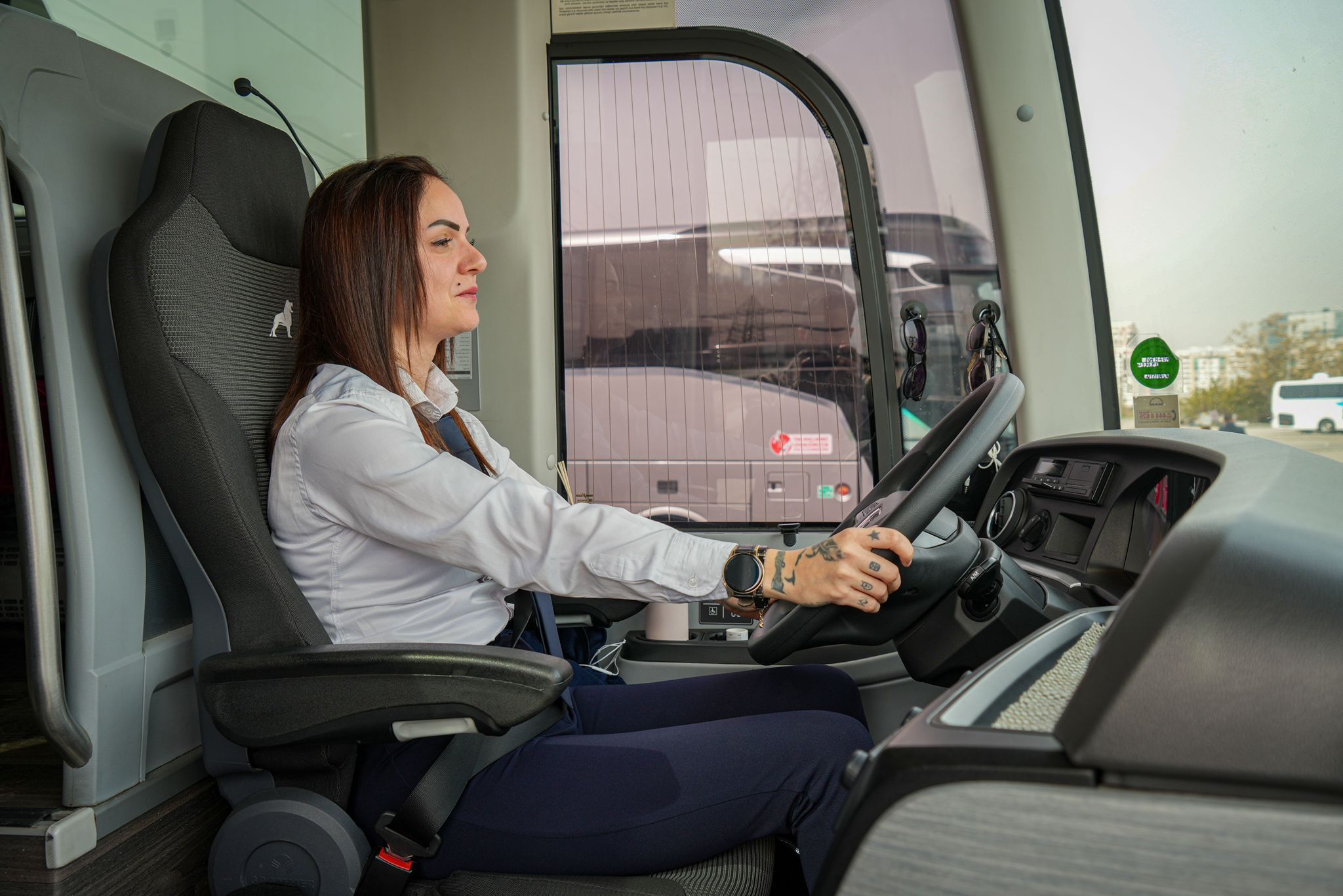 "İşe ilk başladığımda zorlanıyordum; çünkü ‘Otobüsü kadın mı kullanacak?’ diyorlardı. Sosyal medyada içerik çekmemin bir nedeni de buydu. Bu işte erkek egemenliğe çok fazla ama kadınlar da bu işi yapabilir. Artık, uçakta, trende, takside de kadın görebiliyoruz, eskisi gibi yadırganmıyoruz. Bu işin iyi yanları hem geziyoruz hem de birçok insan tanıyoruz. Yolcularımızla çok güzel zaman geçiriyoruz. Hostes olduğum zamanlarda benim de örnek aldığım bir kadın şoför vardı. Her zaman onun gibi olmayı hedefledim. Sosyal medyadan görüp, otogara gelerek, mesleğe atılmak isteyen kızlarımız var. Hiç ehliyeti olmayıp da ehliyet alanlar bile var. Kadınlarımız her alanda olmalı."