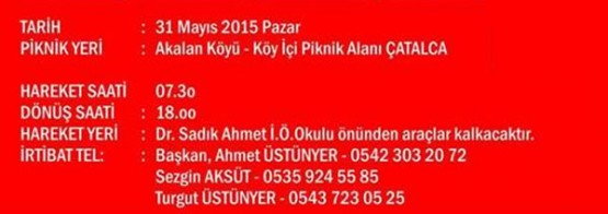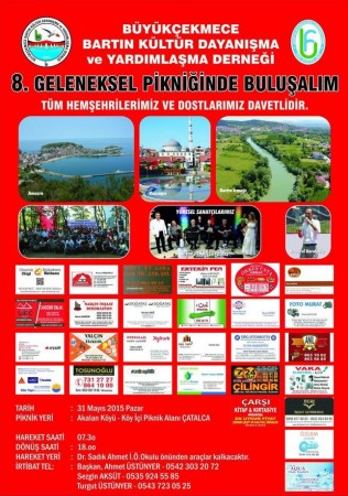 Büyükçekmece Bartın Kültür Dayanışma ve Yardımlaşma Derneği tarafından geleneksel olarak 8.si düzenlenen piknik şenliği 31 Mayıs Pazar günü yapılacak.