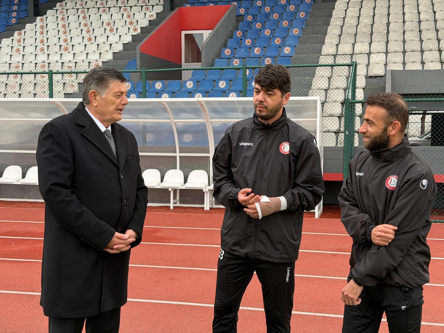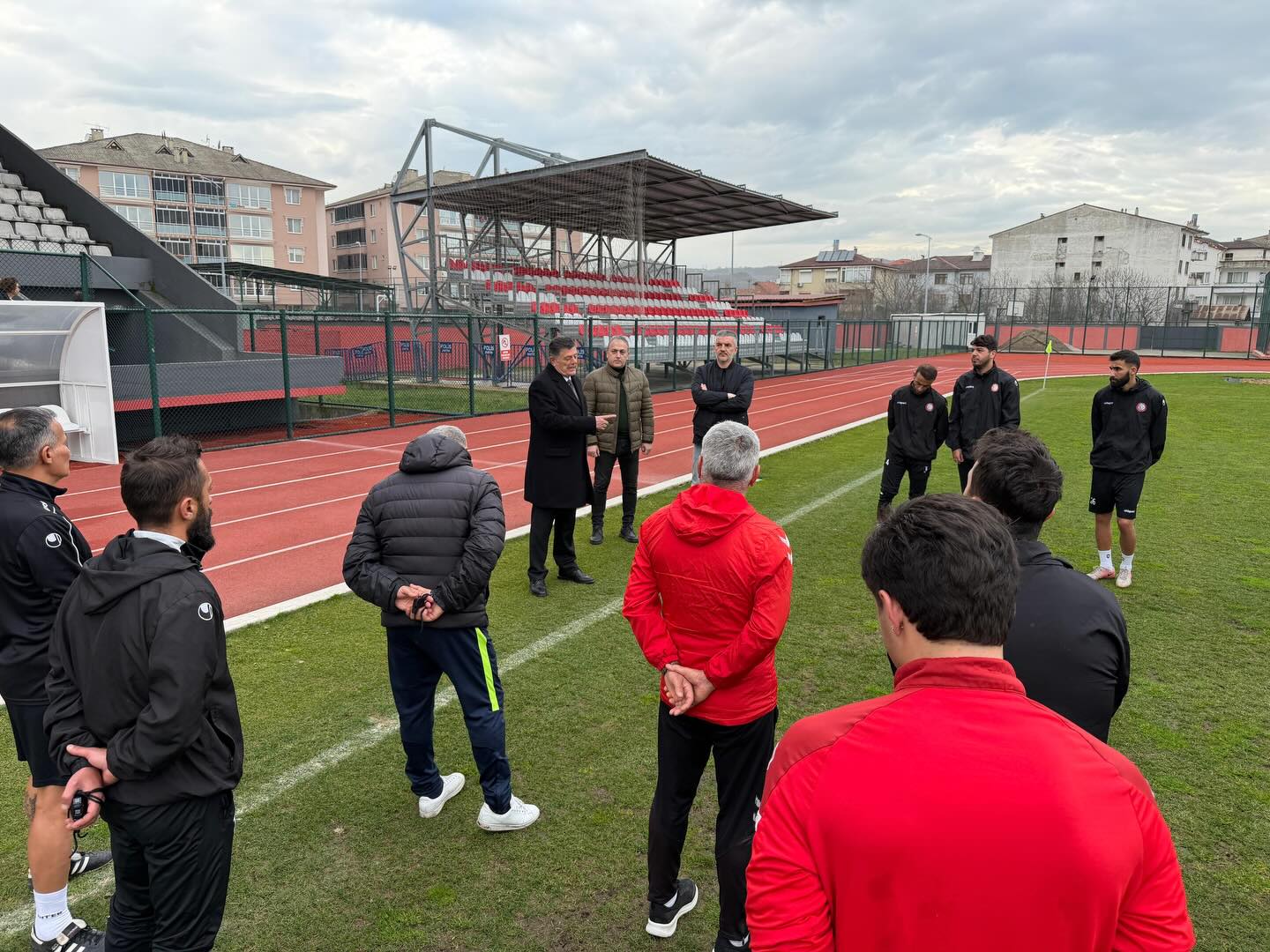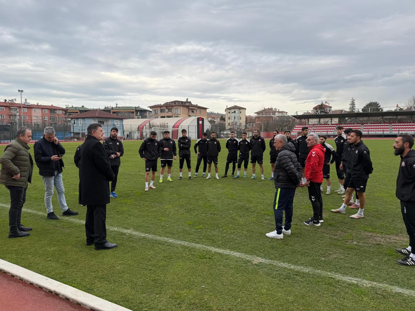 Antrenman sahasında takımla sohbet eden Başkan Yalçınkaya, oyunculara başarı dileklerini ileterek moral verdi.