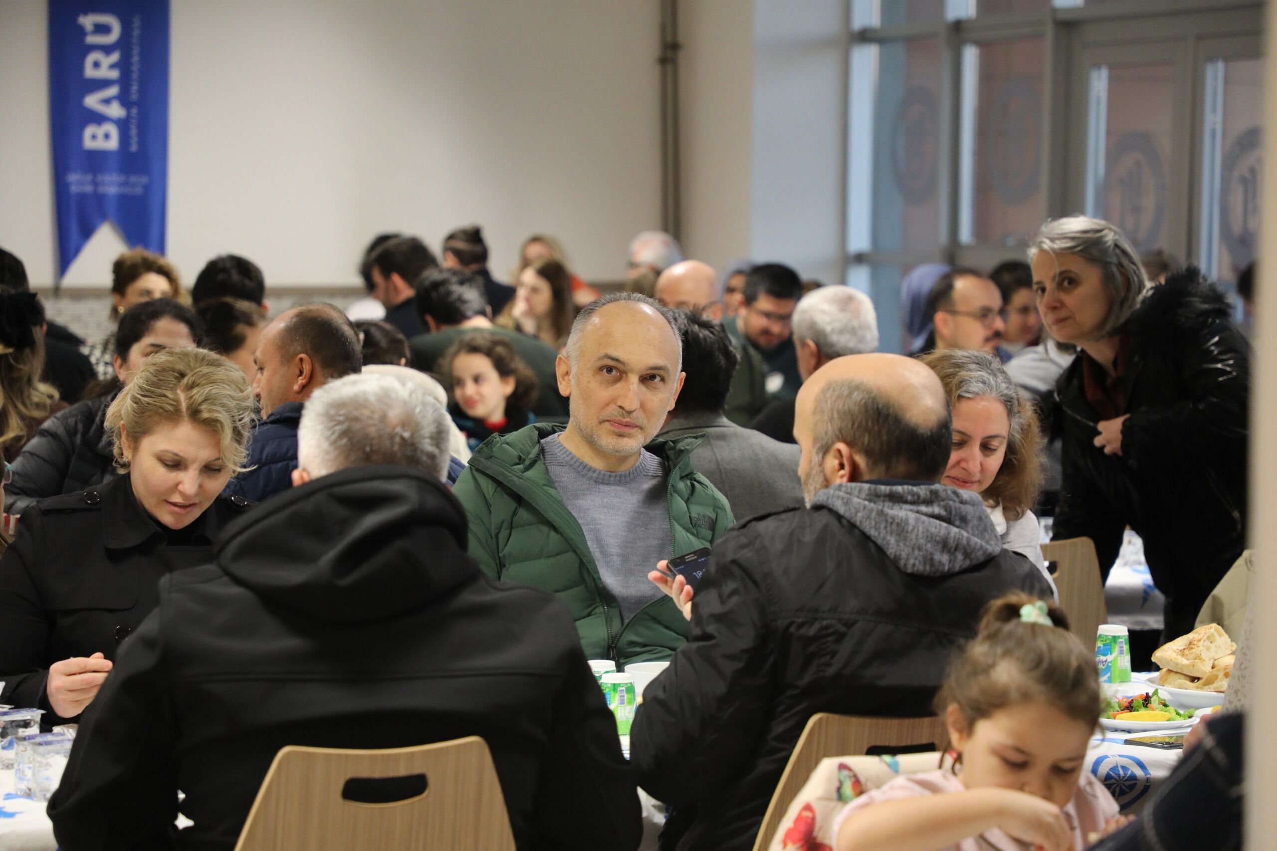 Bartın Üniversitesi (BARÜ) Kutlubey Yerleşkesi’nde gerçekleştirilen iftar programına üniversite personeli ve aileleri yoğun ilgi gösterdi. Program öncesinde masaları dolaşan BARÜ Rektörü Prof. Dr. Ahmet Akkaya, davetlilerle sohbet ederek katılımcıların ramazan ayını tebrik etti.