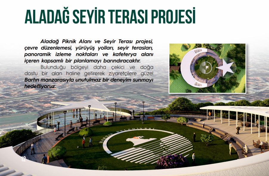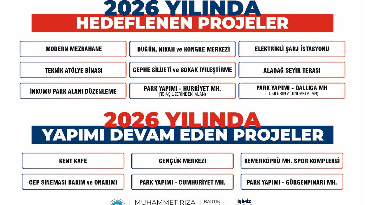 Evet, önemli bir projelerimizden bir tanesi söz vermiştik. İnşallah onu da hayata geçirmenin mutluluğunu 2026 yılında yaşayacağız. Aladağ Seyir Terası projemiz, Aladağ Seyir Terası projemizle ilgili olarak yine proje ekibimizle birlikte Sancar Bey'in başkanlığında hızlı bir şekilde proje ekibi çalışmalarına devam ediyor. Oranın jeolojik etütleri yapıldı. Aynı şekilde o alandaki ilgili kurumların vericileri tek bir kulede toplanacak. Onunla ilgili de çalışma yapıyoruz. Yani o çanak, anten kirliliği de ortadan kalkacak. Tek bir kulede toplanacak ve burası da kafe ve arka tarafta da günübirlik turizm alanı olarak Bartın halkının hizmetine sunulacak çok güzel bir proje inşallah bu sene içerisinde hayata geçirmiş olacağız. En geç 30 Ağustos ya da 29 Ekim’de bu projeyi Bartın'a kazandırmanın mutluluğu yaşayacağız. Cumhuriyet Mahallesi'nde yeni bir park alanımız vardı. O ihtiyaç olarak oradaki vatandaşlarımız tarafından bizlere iletildi. Biz de orada bir projenin iadesini yaptık. Ve o projede orada devam ediyor şu anda. Yine biliyorsunuz Bartın'daki yardıma muhtaç, ihtiyaç sahibi ailelerimizin alt gelir grubu ailelerin ihtiyaçları olan gıda ihtiyaçlarını paketler halinde veriyorduk. Her ay yaklaşık 250, 300 yakın aileye gıda yardımı yapıyoruz. Bartın Belediyesi olarak, şimdi bu paket gıda yardımını kaldırıyoruz. Bundan sonra Bartın Belediyesi, olarak Bartın Kart Sosyal Destek Paketi vereceğiz. Yaklaşık 500 aileye ayda 1.250 TL akıllı kartla sosyal destek kartı olarak yardımcı olacağız. Bundan sonra bu kartı alan marketine gidip istediğini bu kartla alabilecek. Ama bu kartlar aynı zamanda bizler tarafından da takip edilecek. Aynı zamanda kontrol mekanizmasını da biz kurduk. İnşallah bundan sonra da akıllı kart projesi ile halkımıza hizmet edeceğiz. Büyük projelerle iddialı bir şekilde 2026 da hizmetlerimize devam edeceğiz. Özellikle hedeflenen projelerimizde Bartın’ımızı modern bir mezbahaya kavuşturuyoruz. Neden modern bir mezbahaya kavuşturuyoruz şu anda bulunan mezbaha yerini Bartın'ın ihtiyacı olan düğün, nikâh ve kongre merkezi haline getiriyor ve dolayısıyla oradaki mezbahayı alıp Çaydüzü Mahallemizde modern bir mezbaha için çalışmaları yapıldı. Elektrik, mekanik projeleri, statikler çalışmaları bitti. Şimdi ihaleye çıkıyoruz. İnşallah haziran ayında yeni mezbahamıza geçtikten sonra şu andaki mezbaha alanındaki düğün, nikâh ve kongre merkezi ve alışveriş merkezini de hayata geçirmenin mutluluğunu yaşayacağız. Burada 300, 600 kişilik iki nikâh salonu olacak. Burada 800 kişilik kongre merkezi düğün salonu olarak iki amaçlı kullanabilecek çok amaçlı bir salonumuz olacak. Burada aynı şekilde çocuklarımız için bir çocuk eğlence yaşam merkezi olacak. 500 metrekarelik bir alan içerisinde. Ve bununda müjdesini halkımıza ilk defa sizler vasıtasıyla veriyorum. Açık AVM çarşı olacak. Yani orada 30 veya 40 dükkân hem giyim hem restoran veya bir kafe türü açık alanda gezme fırsatı vatandaşlarımızın yeni bir nikâh, kongre salonları, düğün salonları ve çarşı biçimindeki bir alışveriş merkeziyle halkımıza bu hizmeti kazandırmanın mutluluğunu yaşayacağız. Bunun ötesinde önemli bir çalışma daha yapacağız. Şu anda proje çalışması devam ediyor. Yukarı Çarşı Havuzbaşı'ndan başlayarak araç trafiğine ikinci defa kapattığımız 25 yıl sonra yine ikincisi bize nasip oluyor yayalaştırılmış caddelerin cephe sokak iyileştirmeleri çalışmalarına başladık. Bununla ilgili proje ihalesini yaptık. Şu anda ilgili firma çalışıyor alanda ve inşallah bu çalışmalar bittikten sonra Yukarı Çarşı ve Pabuç mağazasının olduğu yere kadar olan, yayalaştırmış caddedeki bütün binaların cepheleri yeniden yenilenecek ve tabela kirliliği ortadan kalkacak. Aynı şekilde sokak sağlıklaştırma projesi kapsamı içerisinde hem zemin kaplama hem aydınlatma gerçekten Bartın'ın yeni bir cazibe merkezi olacak ve kentin özellikle hem dışarıdan gelen insanlarına hem de Bartınlı vatandaşlarımıza sunabileceğimiz çok güzel bir cadde düzenlemesi ve bu projeyi de hayata geçirmenin mutluluğunu yaşayacağız. Bu anlamda yine biliyorsunuz biz özellikle inşallah iki park yapacağız. Bunlardan bir tanesi Dallıca Mahallesi'ndeki, Hürriyet Mahallesi'ndeki muhtarlık binasının yanındaki alan bir tanesi de trafo merkezi var. O trafo merkezini Bartın panoramik manzaralı bir parkı da vatandaşlarımızın hizmetine sunmanın mutluluğunu yaşayacağız. Bununla ilgili de proje çalışmaları yapılıyor ve ihalesine çıkıyoruz yakında. Yeni bir teknik atölye binası yapacağız. Bir atölye açıyoruz. Yani gerçekten bizim ulaştırma müdürlüğünde çalışan marangoz arkadaşlar çok başarılı. Kent mobilyaları anlamında güzel üretim yapıyorlar. Bu kent mobilyaları anlamında yaptıkları üretimleri kamelya yani aklınıza ne gelirse harika işler çıkarıyorlar. Bunu daha iyi bir mekânda fazla seri üretime geçecek şekilde bir kent mobilyaları teknik atölye binasında bu sene yapıp hizmete sunacağız. Bu arada bir şey daha söylemek istiyorum. Bizim cep sinemasının da şu anda bakım ve onarımını yapıyoruz. Cep sineması da uzun senelerdir gerçekten bakımsız kaldığı için orada özellikle kitap fuarı etkinlikleri içerisinde söyleşi yapma imkânı bulamıyoruz. Şimdi kitap fuarı etkinlikleri içerisinde hemen yan tarafta bu salonun bir an önce tamir bakım onarımını yapıp inşallah şubata kadar bitireceğiz. Bittikten sonra bu cep sineması da Bartın halkının hizmetine sunacağız. Hem de aynı zamanda orada tiyatro gösterileri olacak. Hem de aynı zamanda çocuklarımız için her hafta sonu film gösterilerini yapmaya devam edeceğiz. Bu arada Bartın'ın en ö
