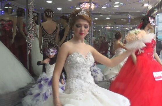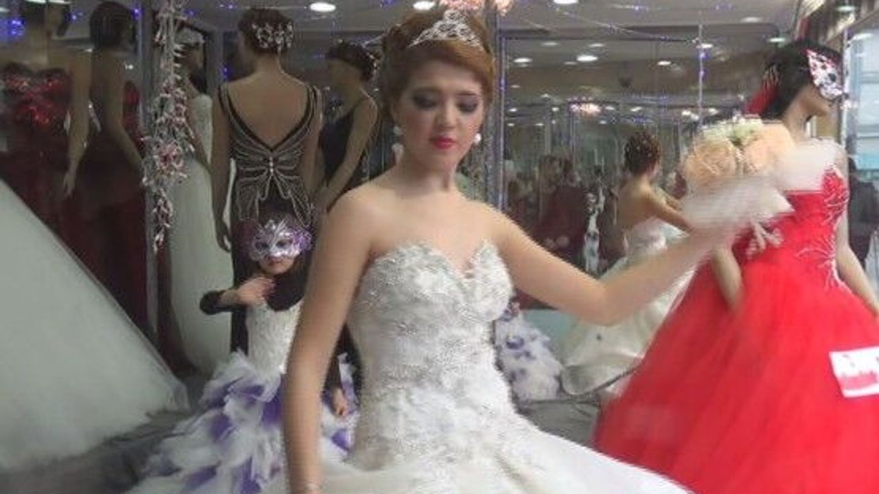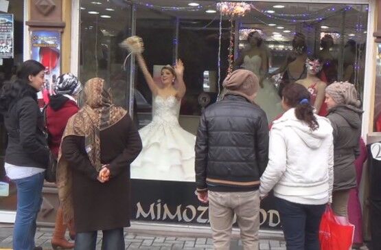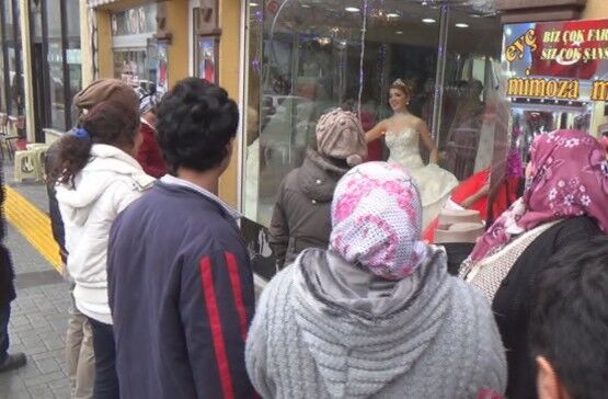 BARTIN’DA GELİNLİK FİRMASI SAHİBİ BİR KİŞİ, GELİNLİK GİYDİRDİĞİ CANLI MANKENİ VİTRİNE KOYARAK VATANDAŞLARIN İLGİSİNİ ÇEKTİ. (SERKAN ARAT/BARTIN-İHA)