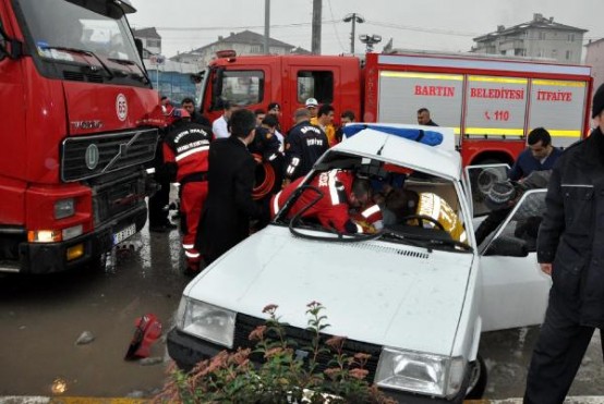 BARTIN ÇATMACA KAVŞAĞINDA BİR TIR İLE OTOMOBİLİN ÇARPIŞMASI SONUCU 2 KİŞİ YARALANDI. (SÜLEYMAN KARAMAN/BARTIN-İHA)