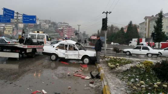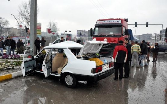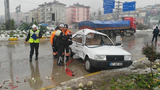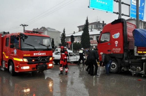 TRAFIK ISIKLARININ YANMADIGI KAVSAKTA TIR'IN CARPTIGI OTOMOBILDEKI 2 KISI YARALANDI. FOTO-AYHAN ACAR-BARTIN-DHA