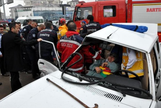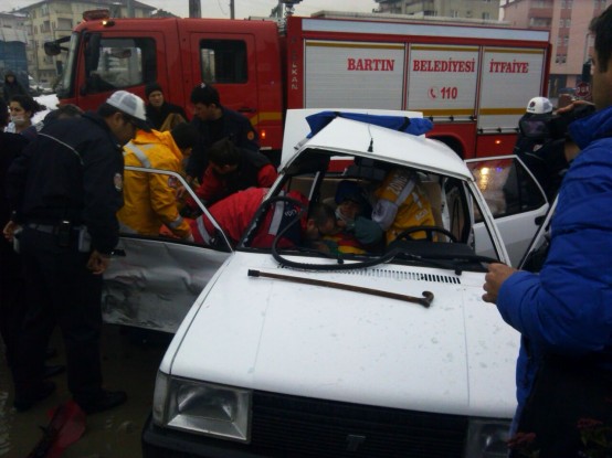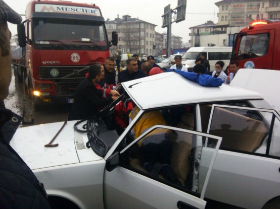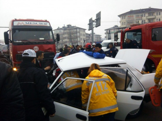 Çatmaca kavşağında bir Tır ve otomobilin karıştığı kaza meydana geldi. Kazada otomobil içinde sıkışan kazazede kurtarılmaya çalışılıyor.