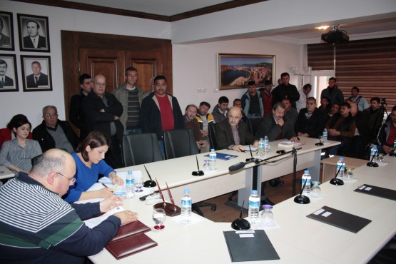 AMASRA’DA YAPILAN BELEDİYE MECLİS TOPLANTISINDA 5. MADDENİN GÖRÜŞÜLMEYE BAŞLAMASIYLA TANSİYON BİR ANDA YÜKSELDİ. YAŞANAN SERT TARTIŞMALARIN ARDINDAN CHP’Lİ MECLİS ÜYELERİ, KENDİLERİNE HAKARET EDİLDİĞİ GEREKÇESİYLE SALONU TERK ETTİ. (HALİL TEKİN/BARTIN-İHA)