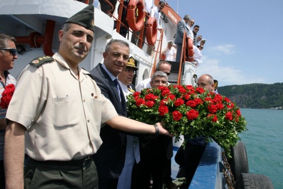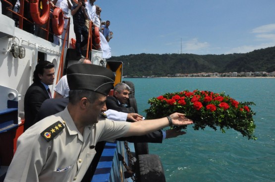 1 Temmuz Denizcilik ve Kabotaj Bayramının 89’uncu Yıldönümünde Amasra Kaymakamı Kadir Taner ESER, Amasra Belediye Başkanı M.Emin TİMUR , Garnizon Komutanı Bünyamin KOPOYCU ve Liman Başkanı Şuayip AÇIKGÖZ Bir Dakikalık Saygı Duruşu sonunda Denize Çelenk bıraktılar.