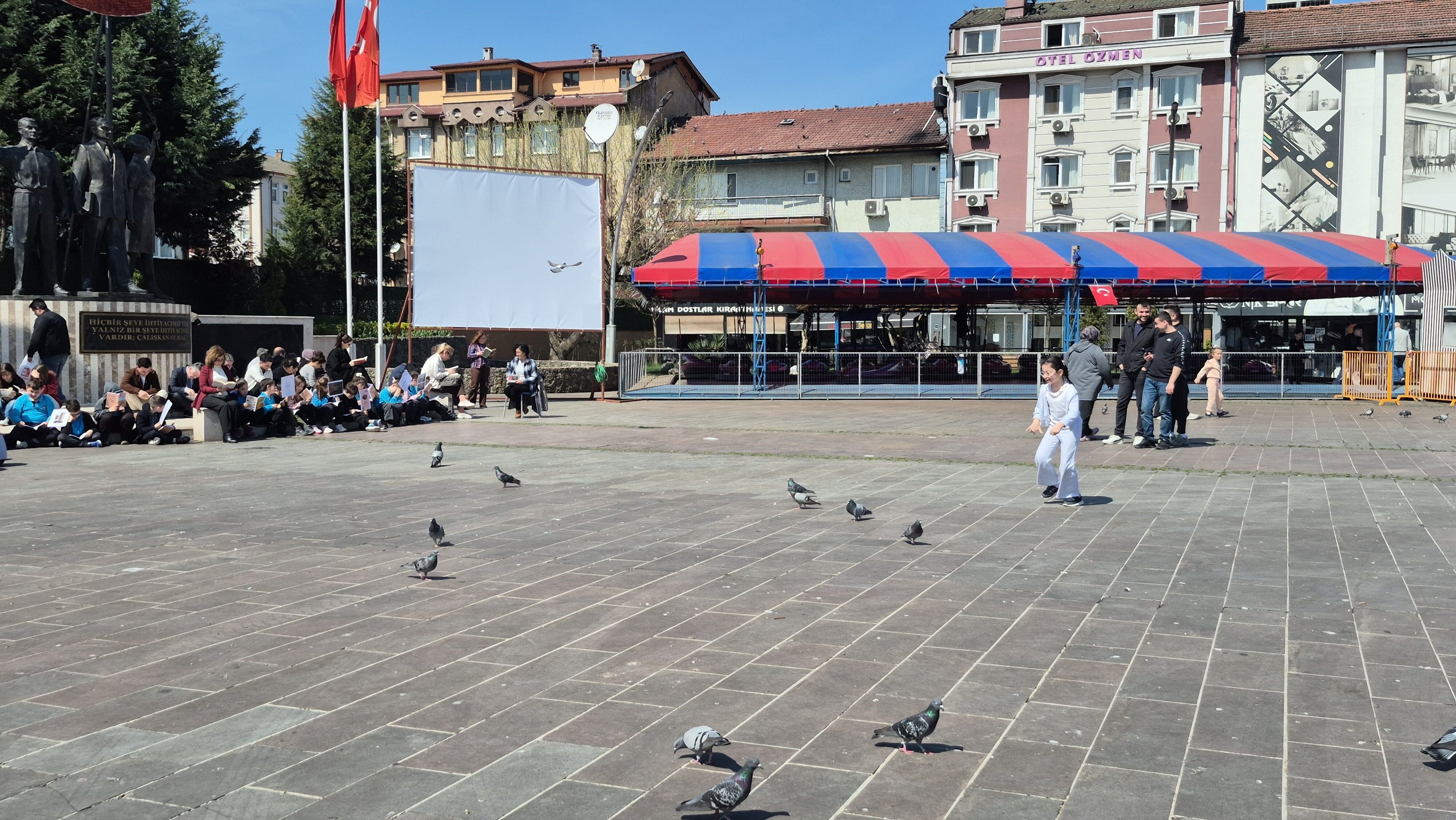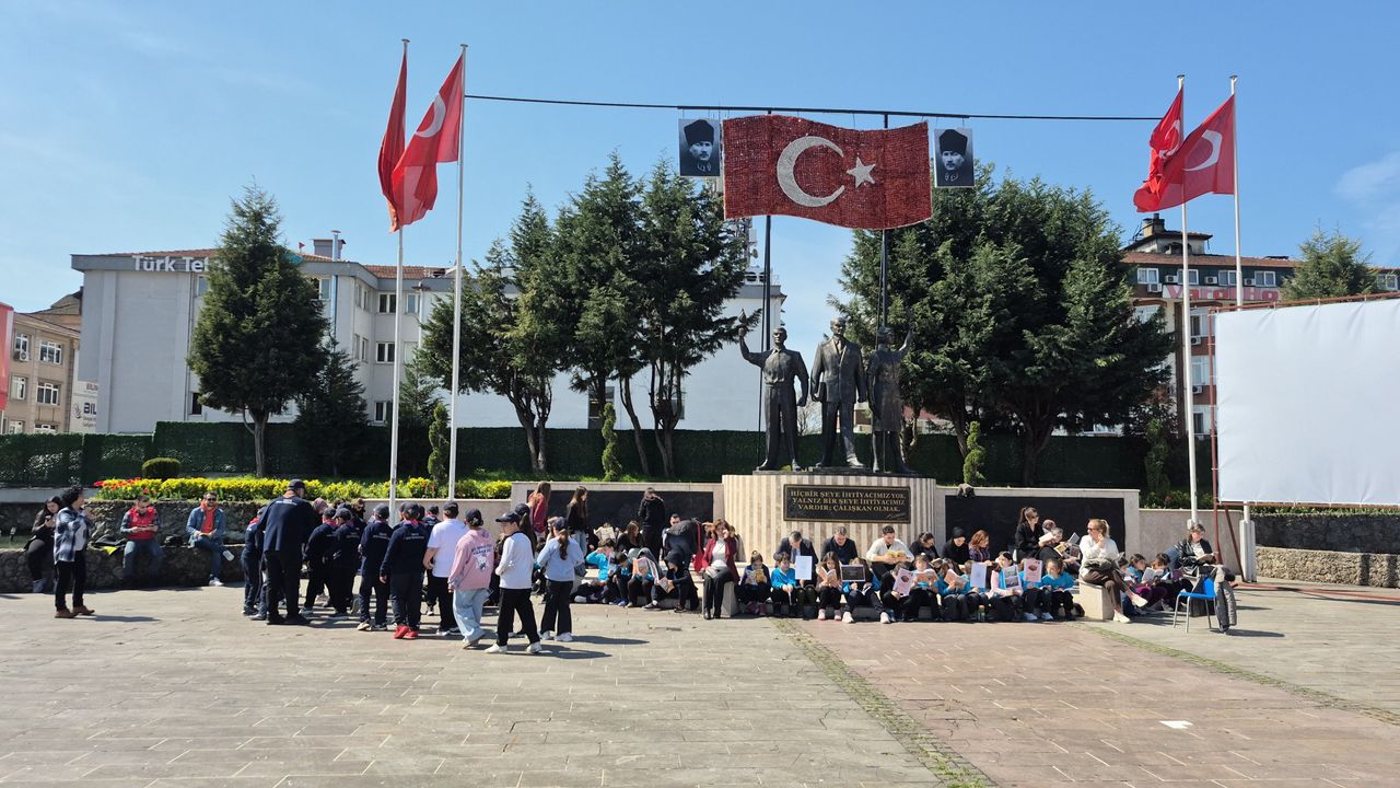 Bartın'da kent meydanında gerçekleşen sessiz kitap okuma etkinliğine katılanlar, çevredeki ses ve gürültüye rağmen pür dikkat kitap okuyarak, dikkat çekmeyi başardı.