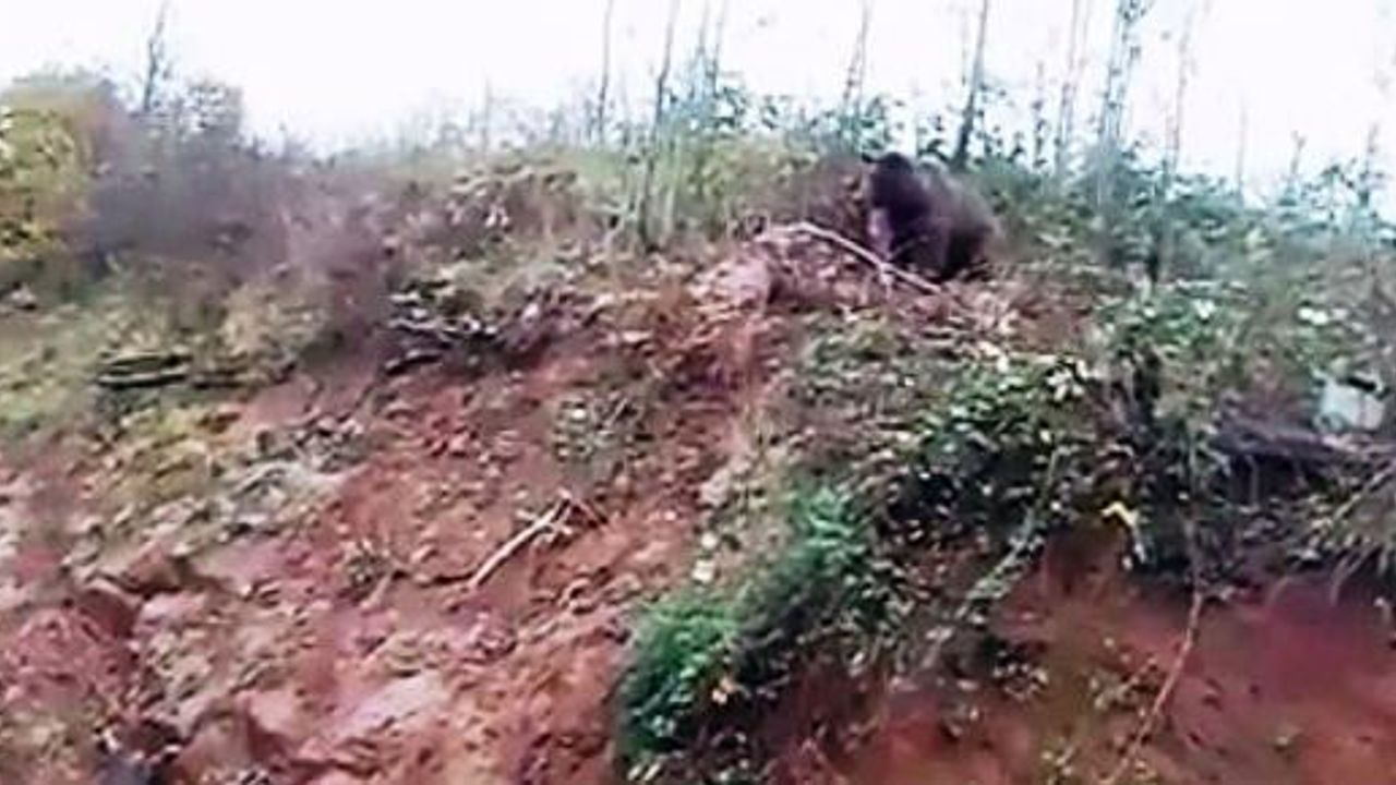 BARTIN'IN KURUCAŞİLE İLÇESİNDE DOMUZ KAPANINA YALANAN AYININ KURTULMA ÇABASI KÖYLÜLER TARAFINDAN GÖRÜNTÜLENDİ. (SÜLEYMAN KARAMAN/BARTIN-İHA)