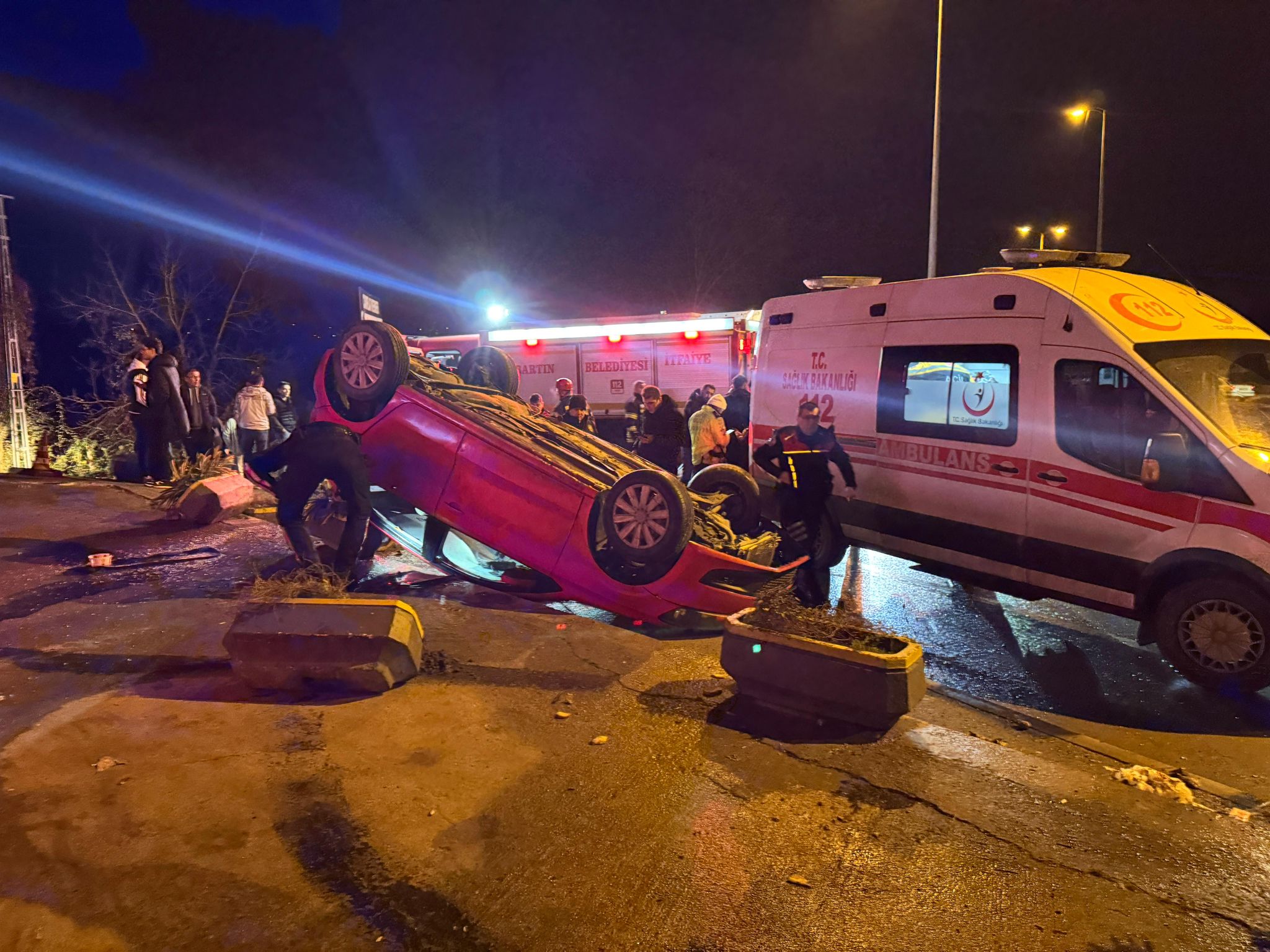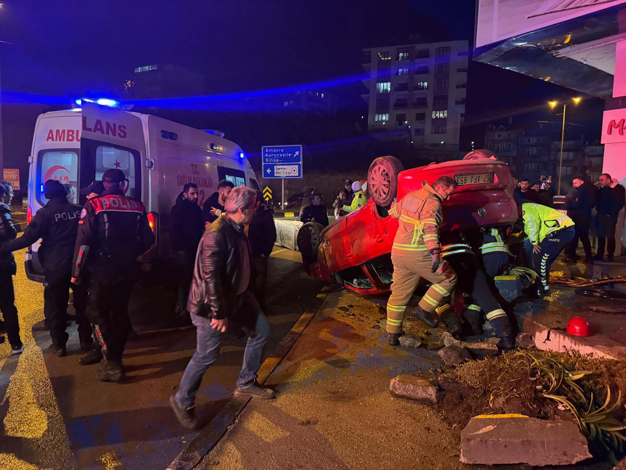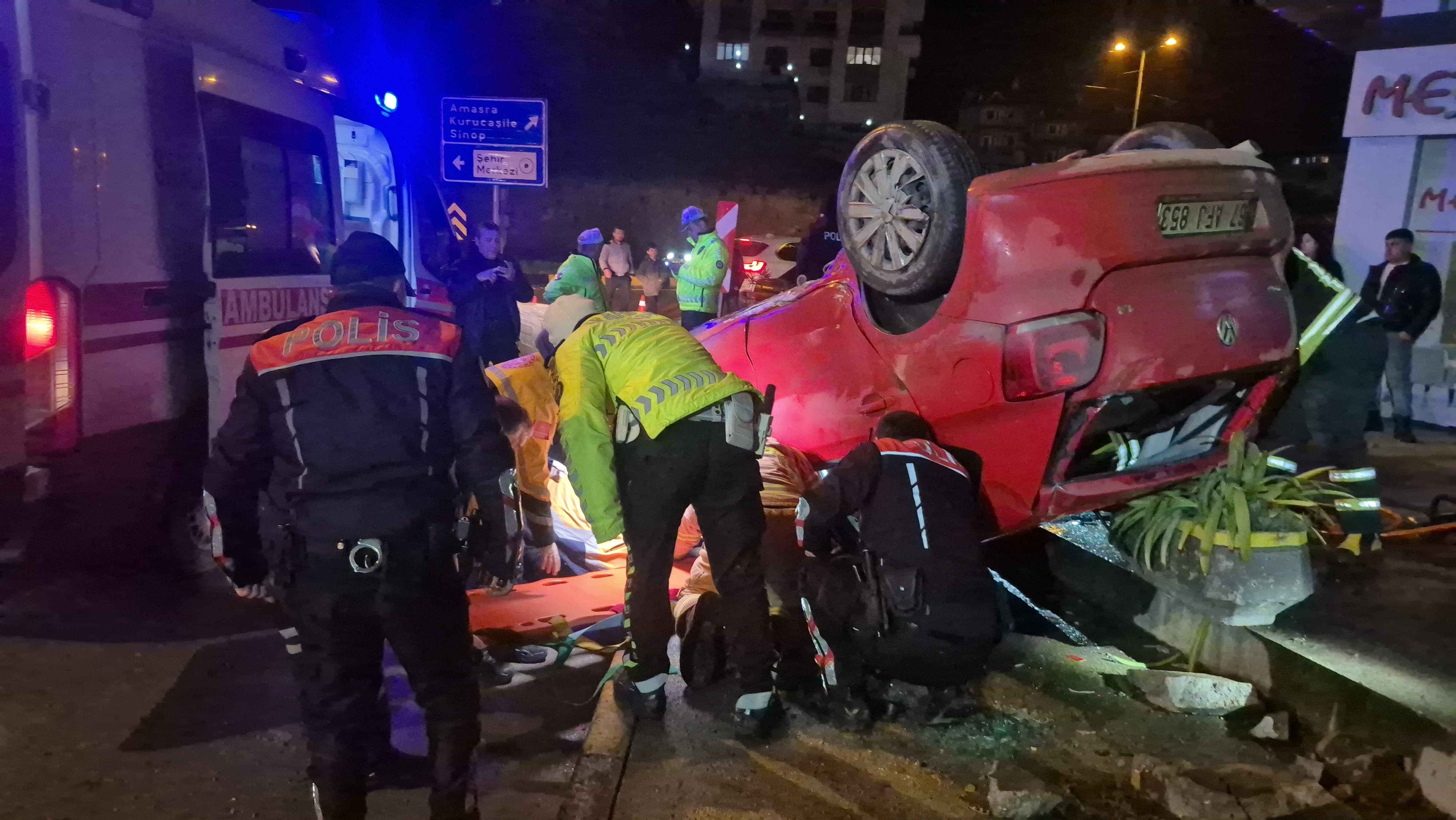 BARTIN'da polisin 'dur' ihtarına uymayıp kaçan otomobilin sürücüsünün refüje çarpması sonucu araç takla attı. Kazada 1'i ağır 3 kişi yaralandı.