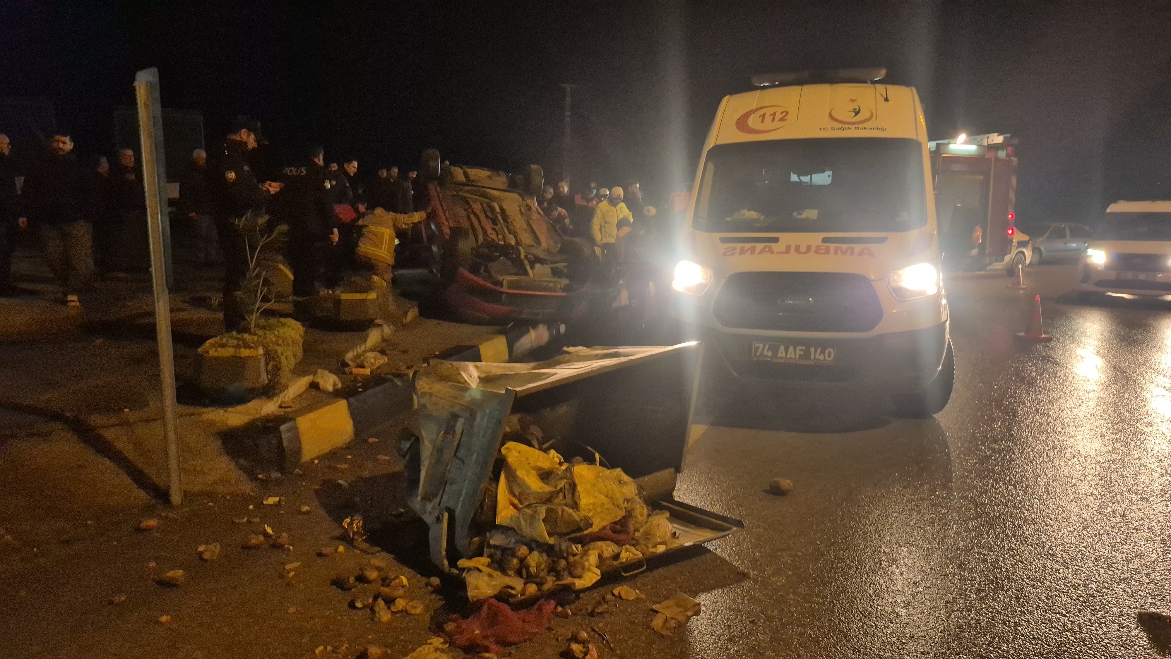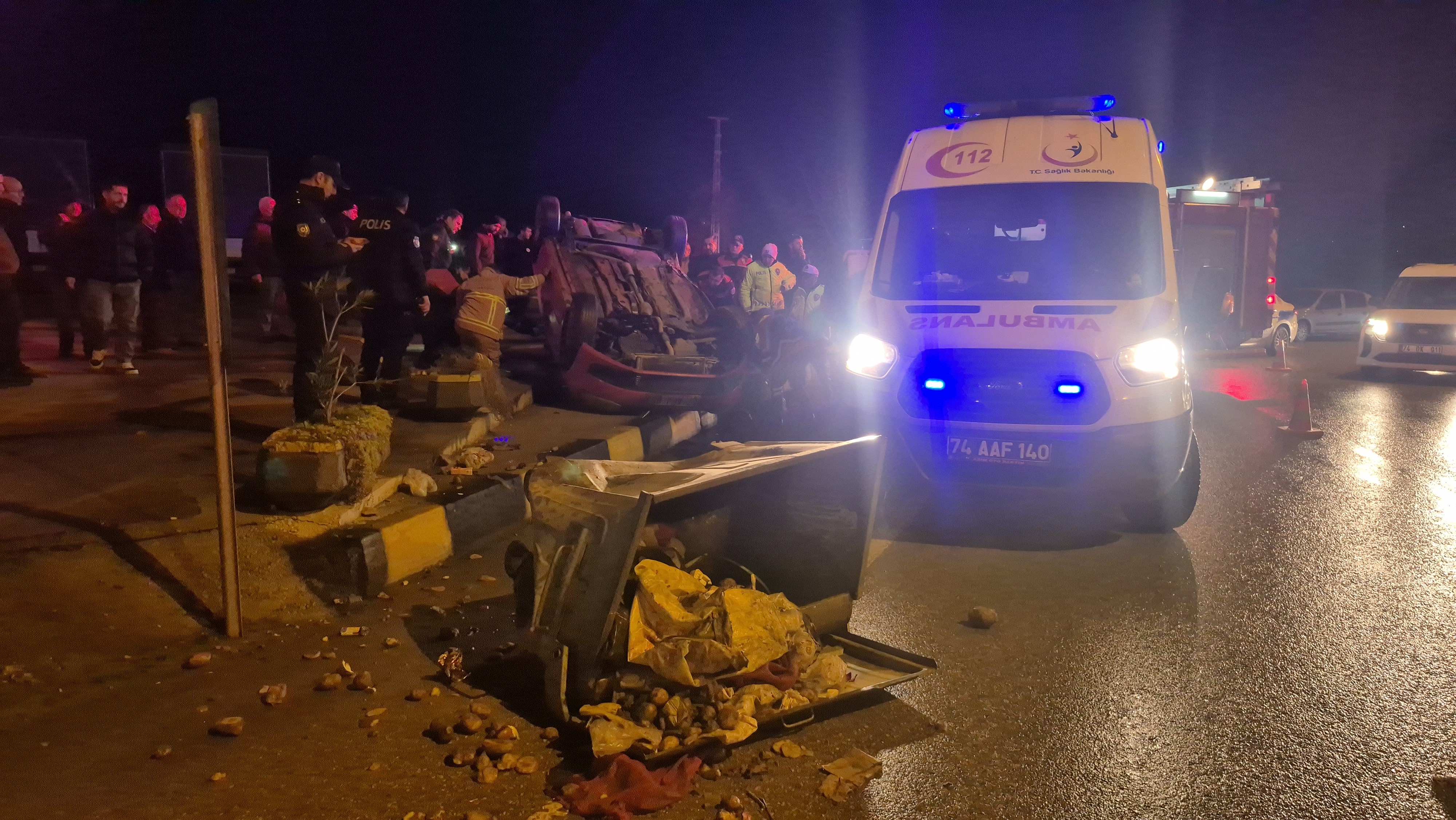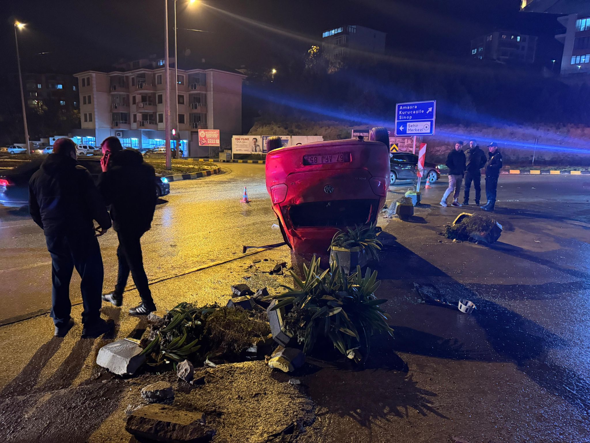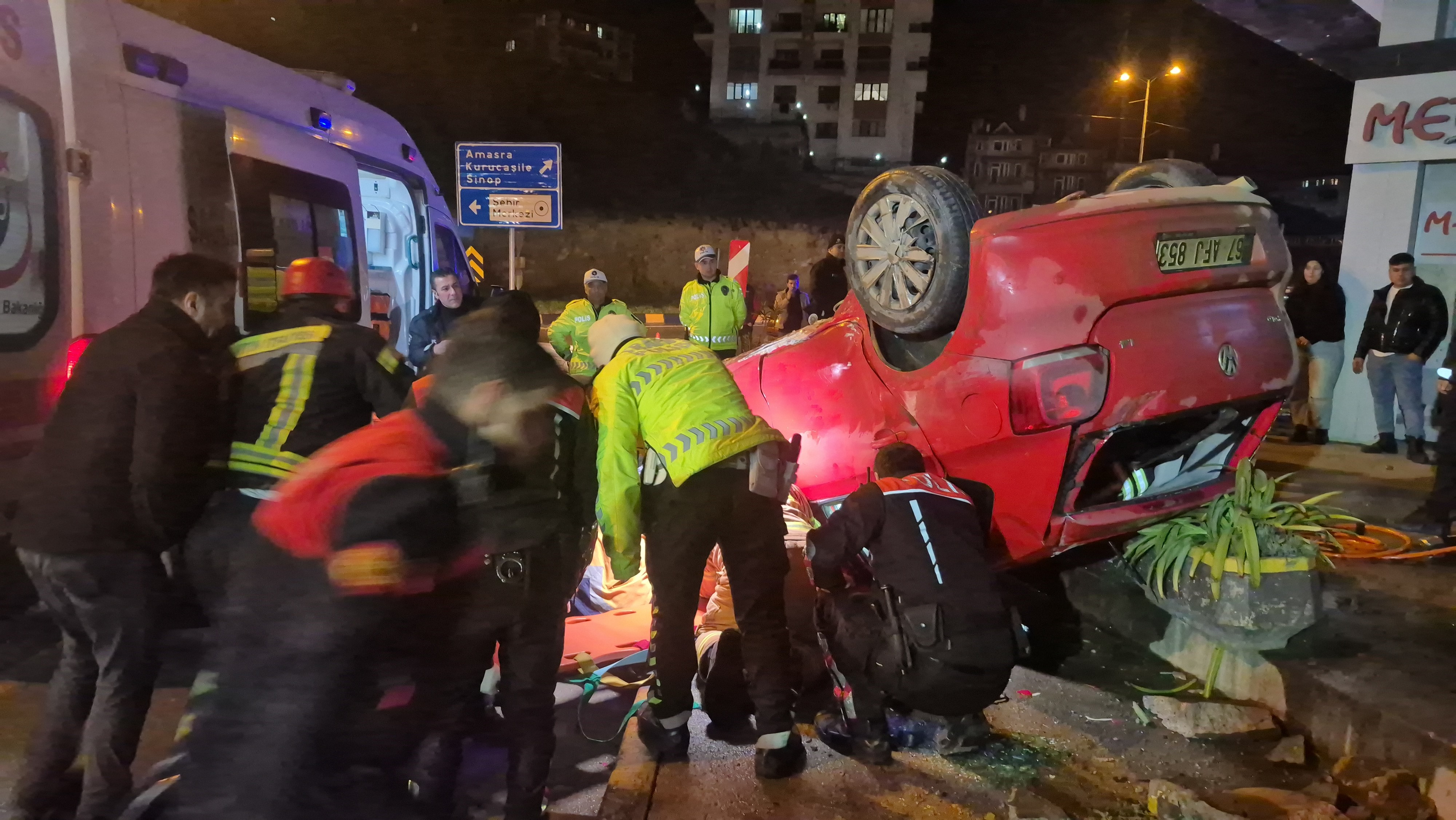 BARTIN'da polisin 'dur' ihtarına uymayıp kaçan otomobilin sürücüsünün refüje çarpması sonucu araç takla attı. Kazada 1'i ağır 3 kişi yaralandı.
