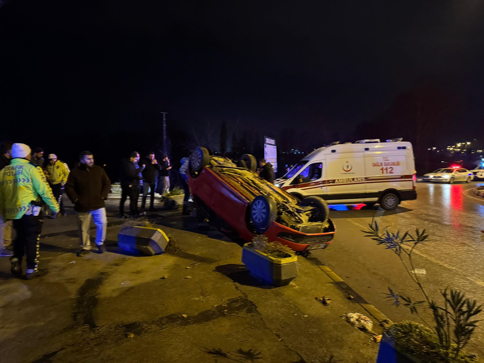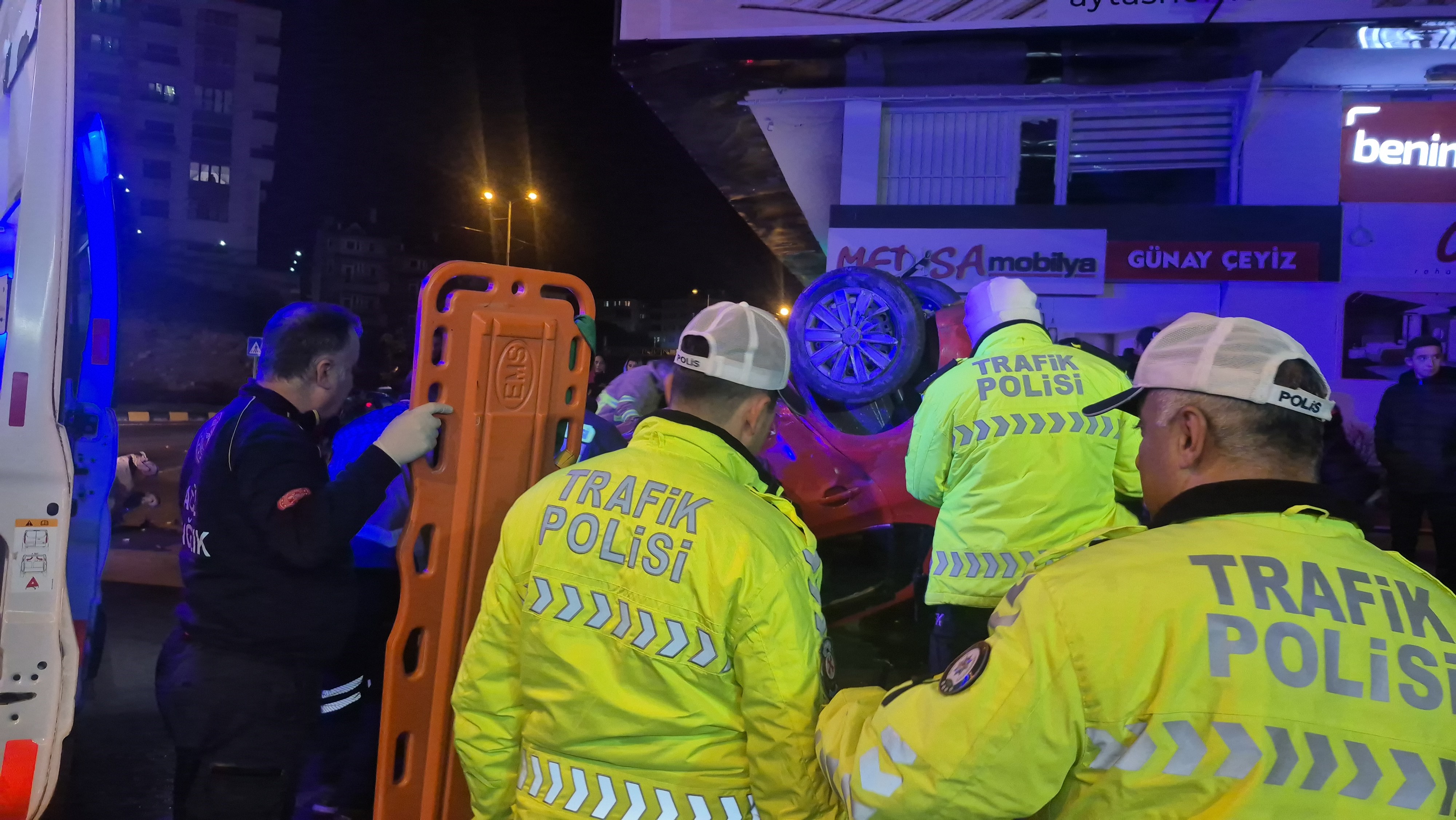 Edinilen bilgilere göre, polis ekiplerinin “dur” ihtarına uymayarak kaçmaya çalışan otomobil, kavşakta sürücüsünün direksiyon hâkimiyetini kaybetmesi sonucu yoldan çıkarak takla attı.