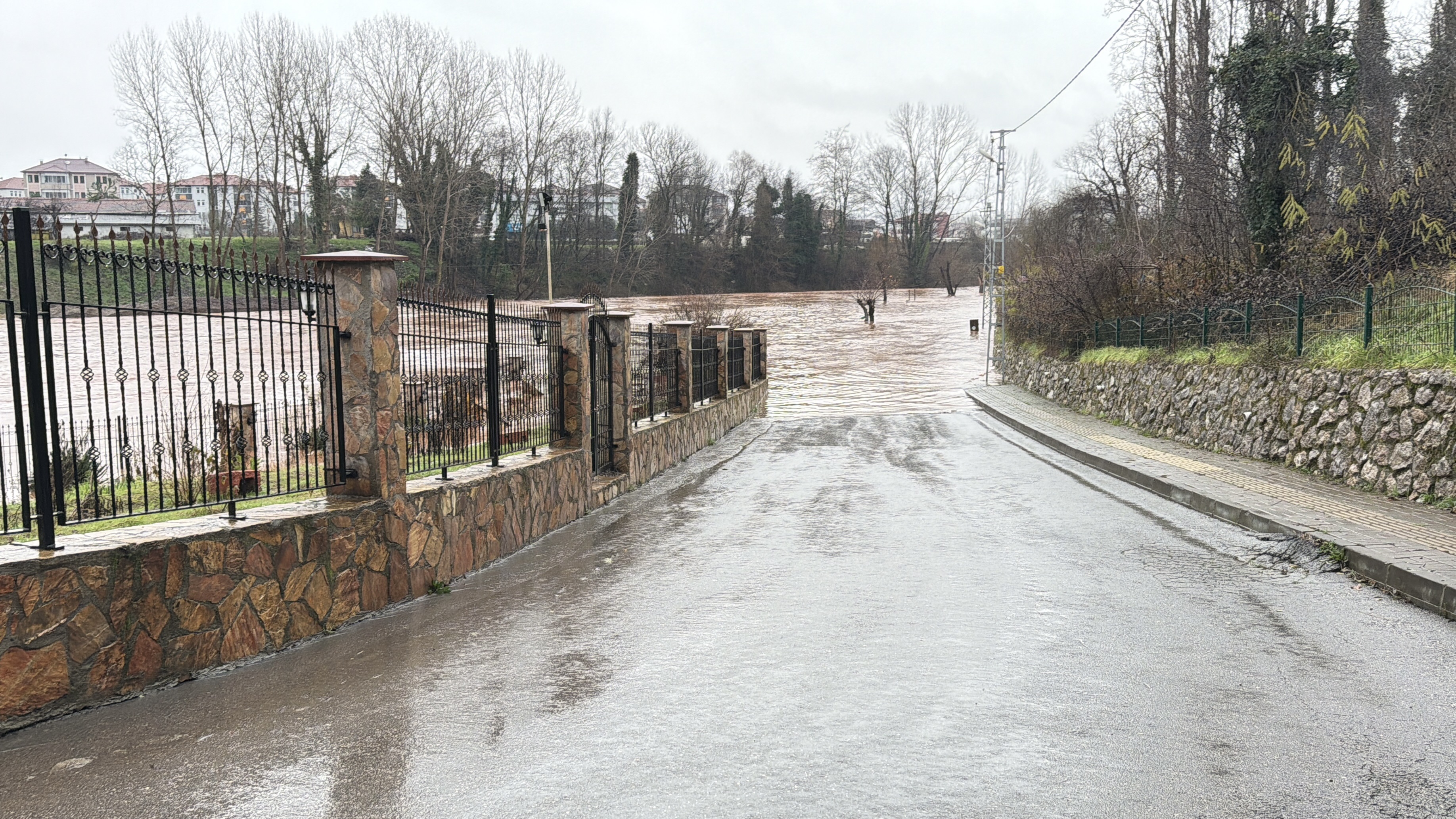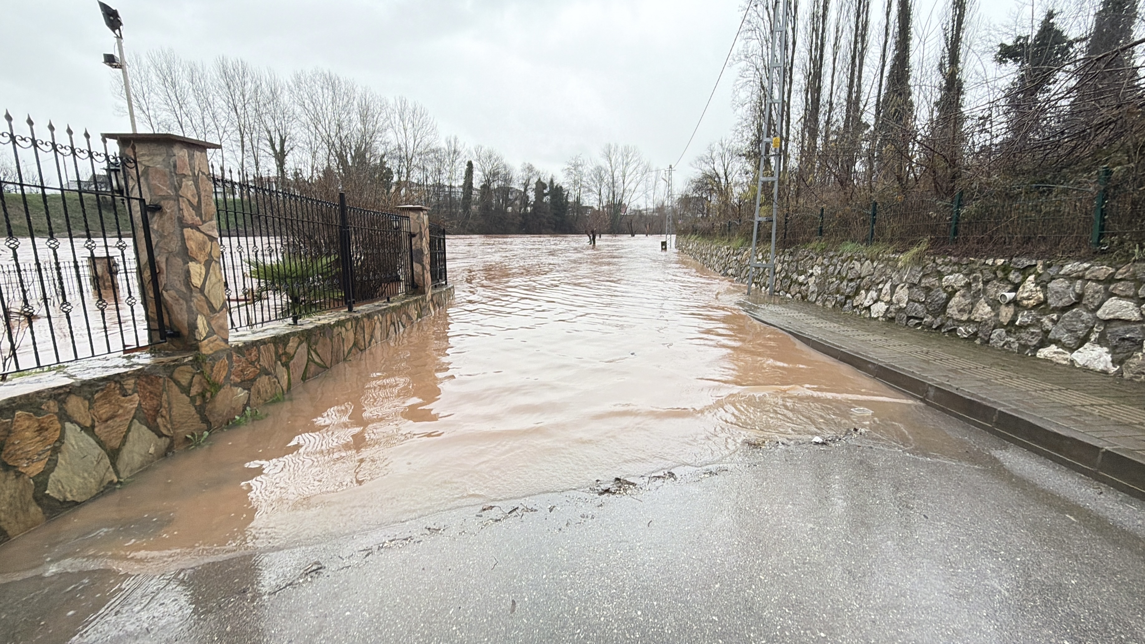 Bartın'da etkili olan yağmur ve kar yağışı sonrası ırmak taştı. Irmak suyu, Çağlayan Piknik Alanı önündeki yol ve kaldırıma çıkarken polis bölgeye şerit çekti.
