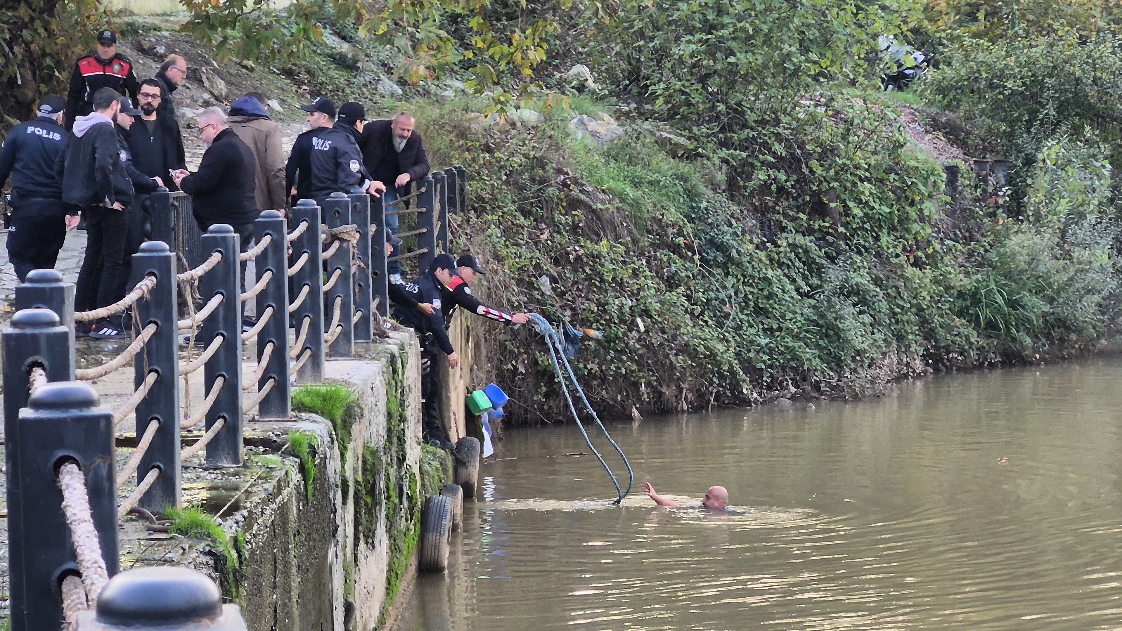 Bartın'da eşiyle tartışan bir kişi ırmağa atladı. Polis tarafından ikna edilen şahıs, ağaç dalı, kıyafet ve halat yardımıyla sudan çıkarıldı.