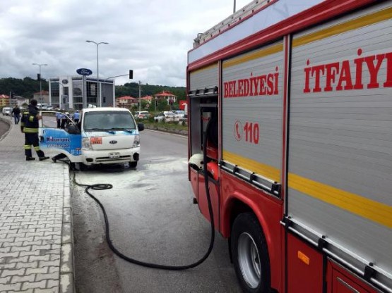 SEYIR HALINDEYKEN ALEV ALAN TUP KAMYONETINDEKI YANGINI ITFAIYE SONDURDU. FOTO-AYHAN ACAR-BARTIN-DHA