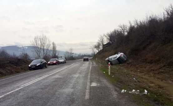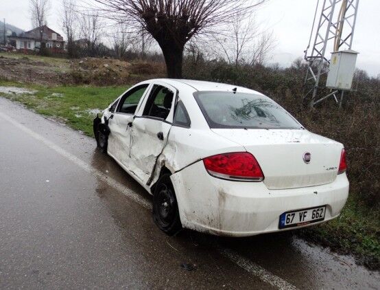 BARTIN'DA DÜZ YOLDA TAKLA ATAN OTOMOBİLDE BULUNAN 2 KİŞİ YARALANDI. (SÜLEYMAN KARAMAN/BARTIN-İHA)