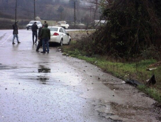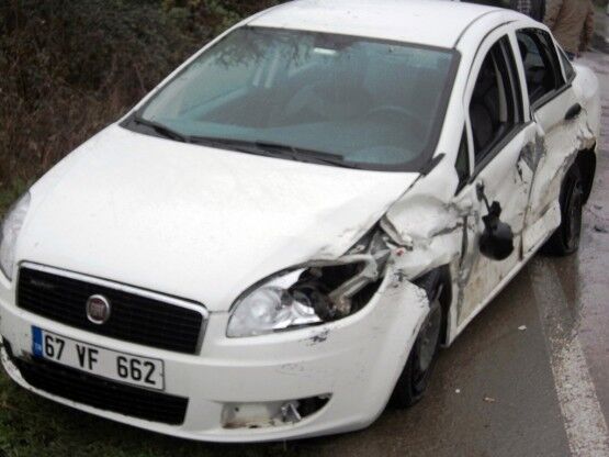 BARTIN'DA MEYDANA GELEN TRAFİK KAZASINDA İKİ OTOMOBİL KAFA KAFAYA ÇARPIŞTI. (SÜLEYMAN KARAMAN/BARTIN-İHA)