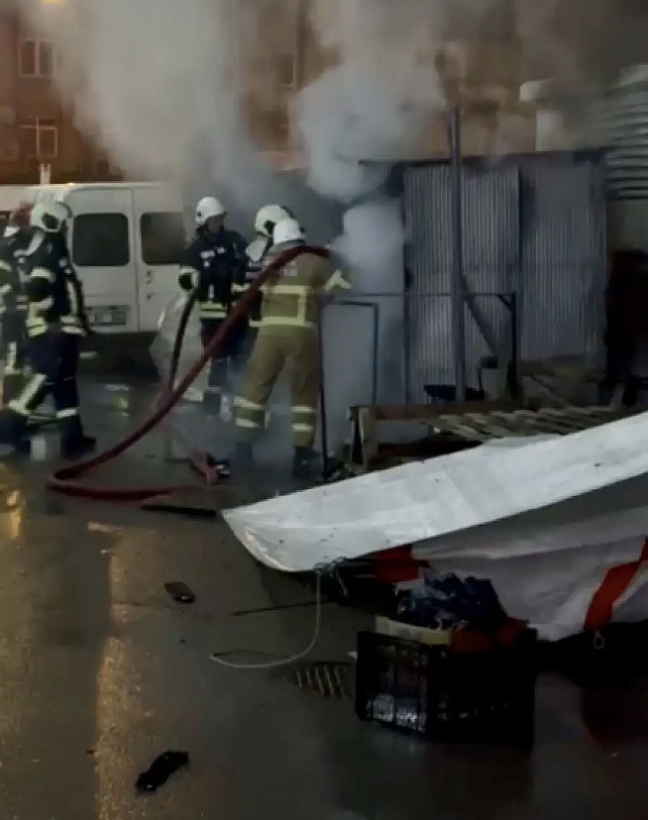 Patlama tedirginliğe yol açarken, itfaiye ekipleri yangına müdahale ederek söndürdü. Polis ekipleri ise çevrede güvenlik önlemi alarak vatandaşları bölgeden uzaklaştırdı.