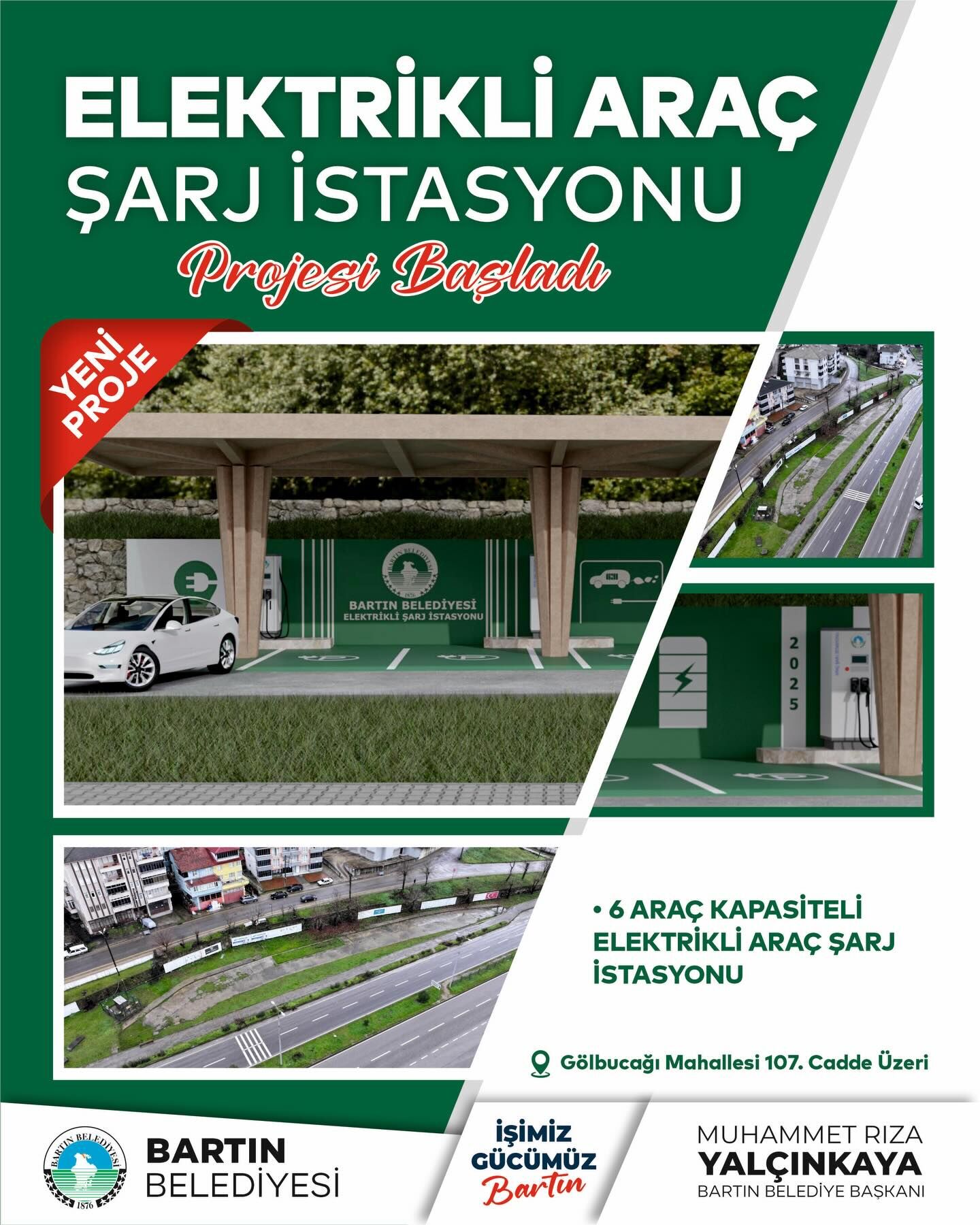 Gölbucağı Mahallesi 107. Cadde üzerinde yapımına başlanan proje kapsamında aynı anda 6 aracın şarj edilebileceği modern bir elektrikli araç şarj istasyonu kurulacak. Bartın Belediyesi tarafından hayata geçirilen proje ile hem elektrikli araç kullanımının teşvik edilmesi hem de çevre dostu ulaşımın desteklenmesi hedefleniyor.