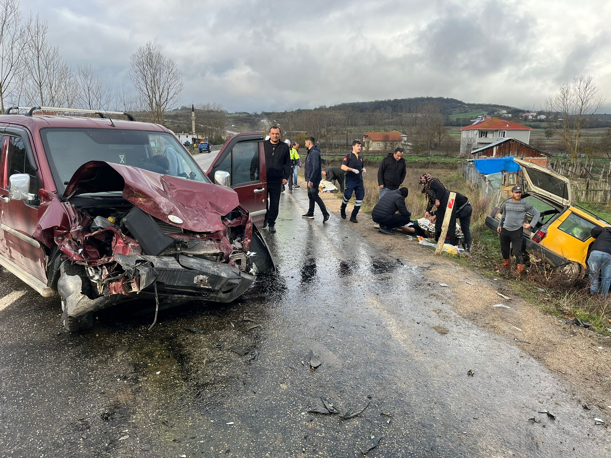 Yoldan geçen diğer sürücülerin ihbarı üzerine kaza yerine sağlık, jandarma, itfaiye ve AFAD ekipleri sevk edildi. Yaralılar, ambulansla çevredeki hastanelere kaldırıldı.