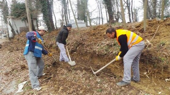 Bartın Belediyesi tarafında Ömertepesi Futbol Sahası hizmet binasının alt yapı ihtiyacını karşılamak için 150'lik beton büzlerle 35 metre uzunlukta yeni kanalizasyon hattı oluşturuluyor