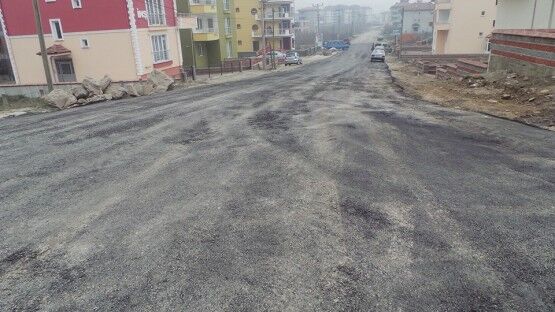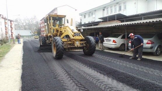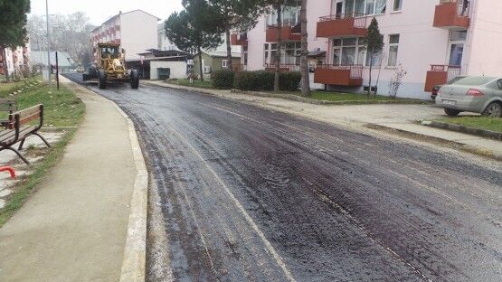 Bartın Belediyesi Kemermöprü Mahallesi'nde asker lojmanları içerisinden geçen imar yolu sıcak asfaltla düzenleniyor
