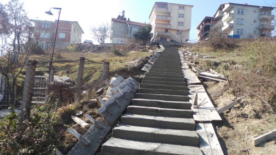 Bartın Belediyesi tarafından Aladağ Mahallesi'ne bağlı 9.Sokak ile 10.Sokak arasına başlatılan merdiven çalışması hızlı bir şekilde devam ediyor.