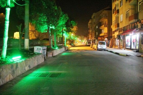 Bartın Belediyesi tarafından yolları sıcak asfaltla düzenlenen, kaldırımları geniş ve engelli vatandaşlara uygun şekilde yeniden yapılan, duvarları kayrak taşlarıyla giydirilen Hendekyanı Caddesi şimdi de renkli led lambalarla aydınlatılıyor.