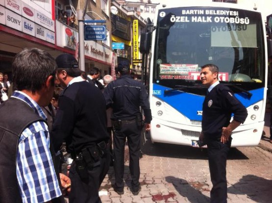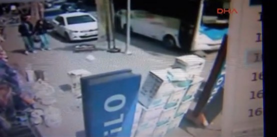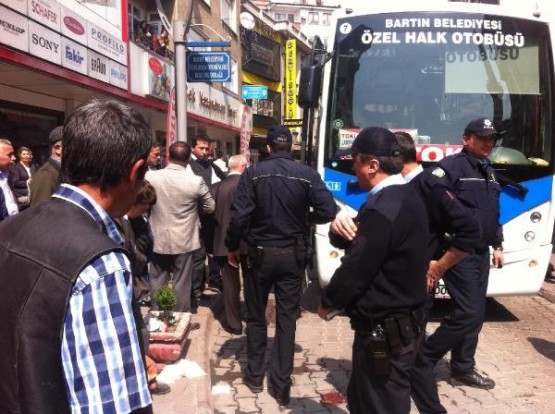 BARTIN'DA DURAKTA INDIGI OTOBUSUN ALTINDA KALAN ALI KARA YARALANDI. KAZA ANI GUVENLIK KAMERASINA YANSIDI. FOTO-BARTIN-DHA