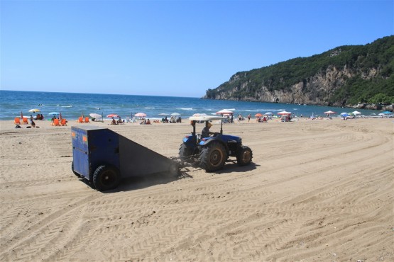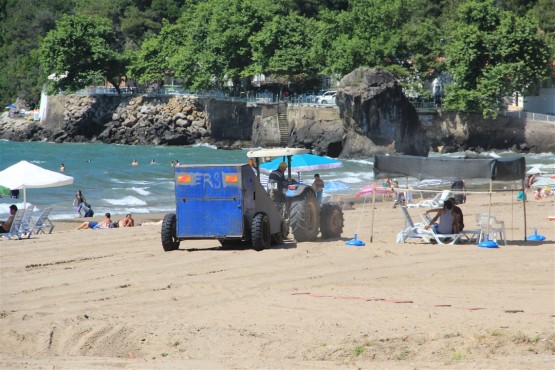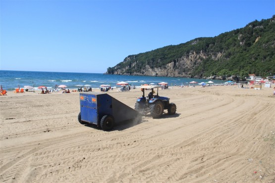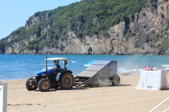 Bartın Belediyesi tarafından yağışlı havalar sonrasında düzenli olarak yapılan kumsal temizleme çalışmaları, eleme sistemiyle titiz temizleme yapan özel iş makineleriyle devam ediyor.