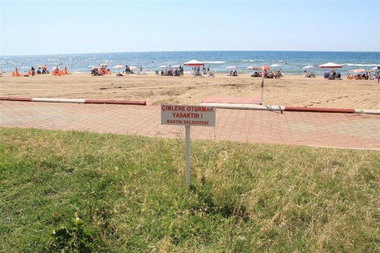 Bartın Belediyesi, İnkumu tatil beldesinde bulunan yeşil alanların korunması ve çevrenin temiz tutulması için uyarı levhaları yerleştirdi.