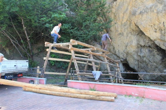 Bartın Belediyesi Ulaşım Hizmetleri Müdürlüğü’ne bağlı ekiplerce İnkumu’nda bulunan mağara girişinde başlatılan düzenleme çalışmaları sürüyor.