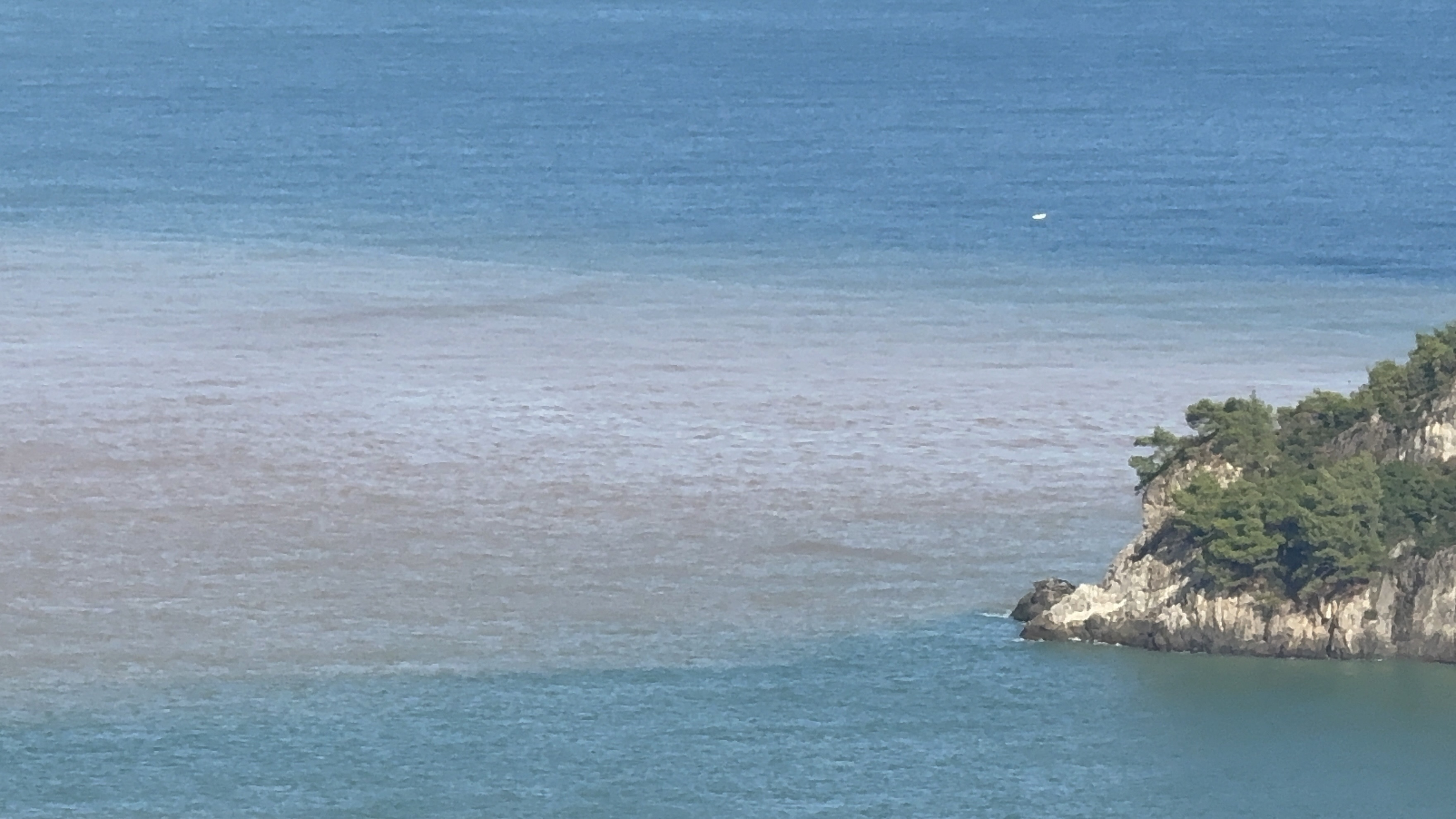 Ilgaz Dağları’ndan doğup Bartın’ın dağlık alanlarından geçerek yaklaşık 15 kilometre kateden Bartın Irmağı’nın taşıdığı çamur, denize döküldüğü noktada suyun rengini kahverengiye çevirdi.