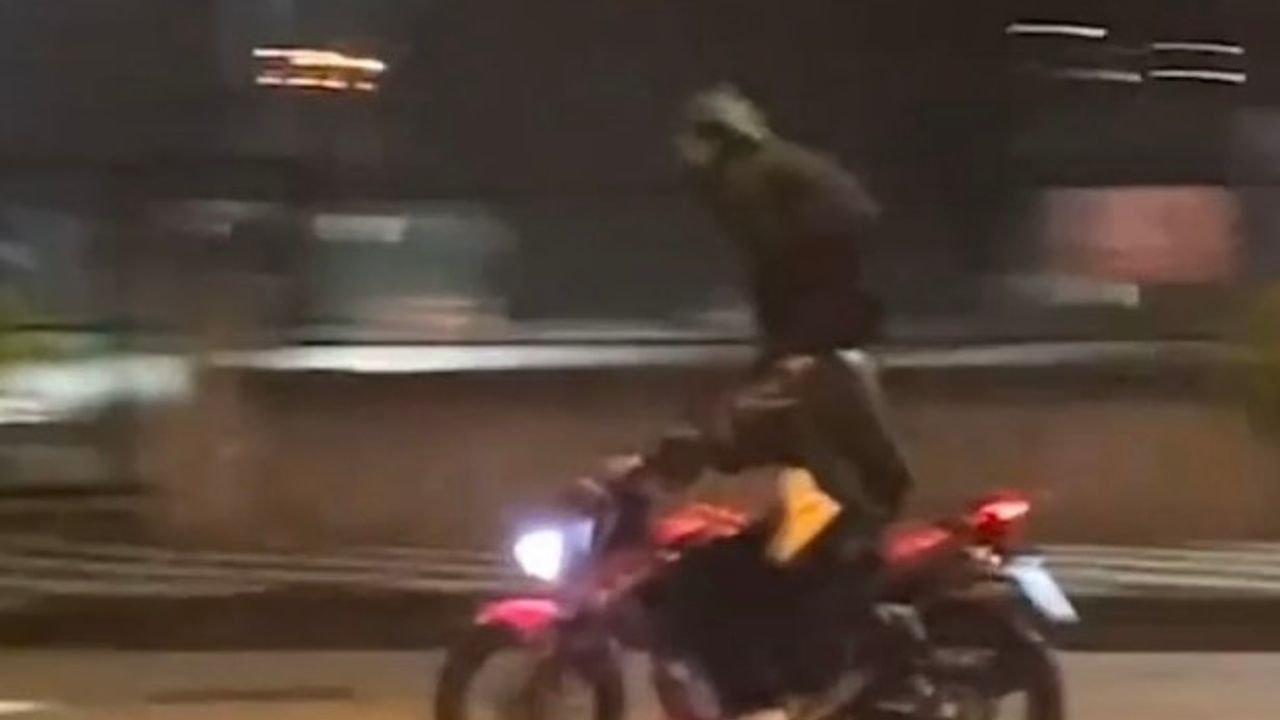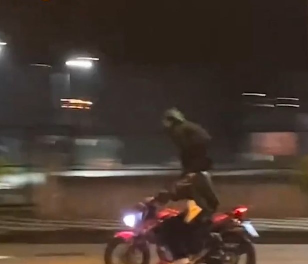 Kentte, yolda ilerleyen motosikletin üzerinde akrobatik hareketler yapan 1 kadın ve omzuna 1 kadını da alıp motosiklet kullanan erkek sürücünün görüntüleri, sosyal medyada yayıldı.