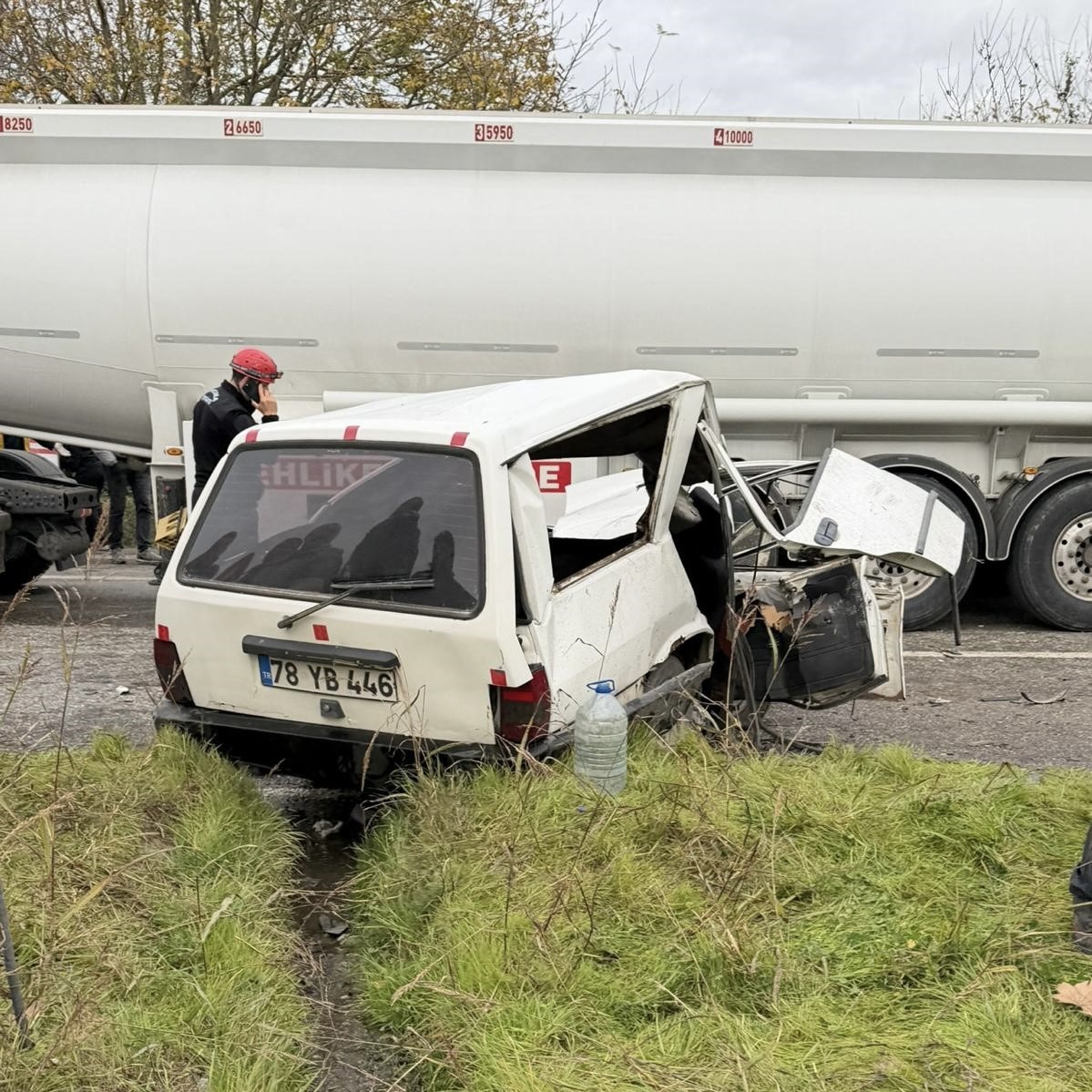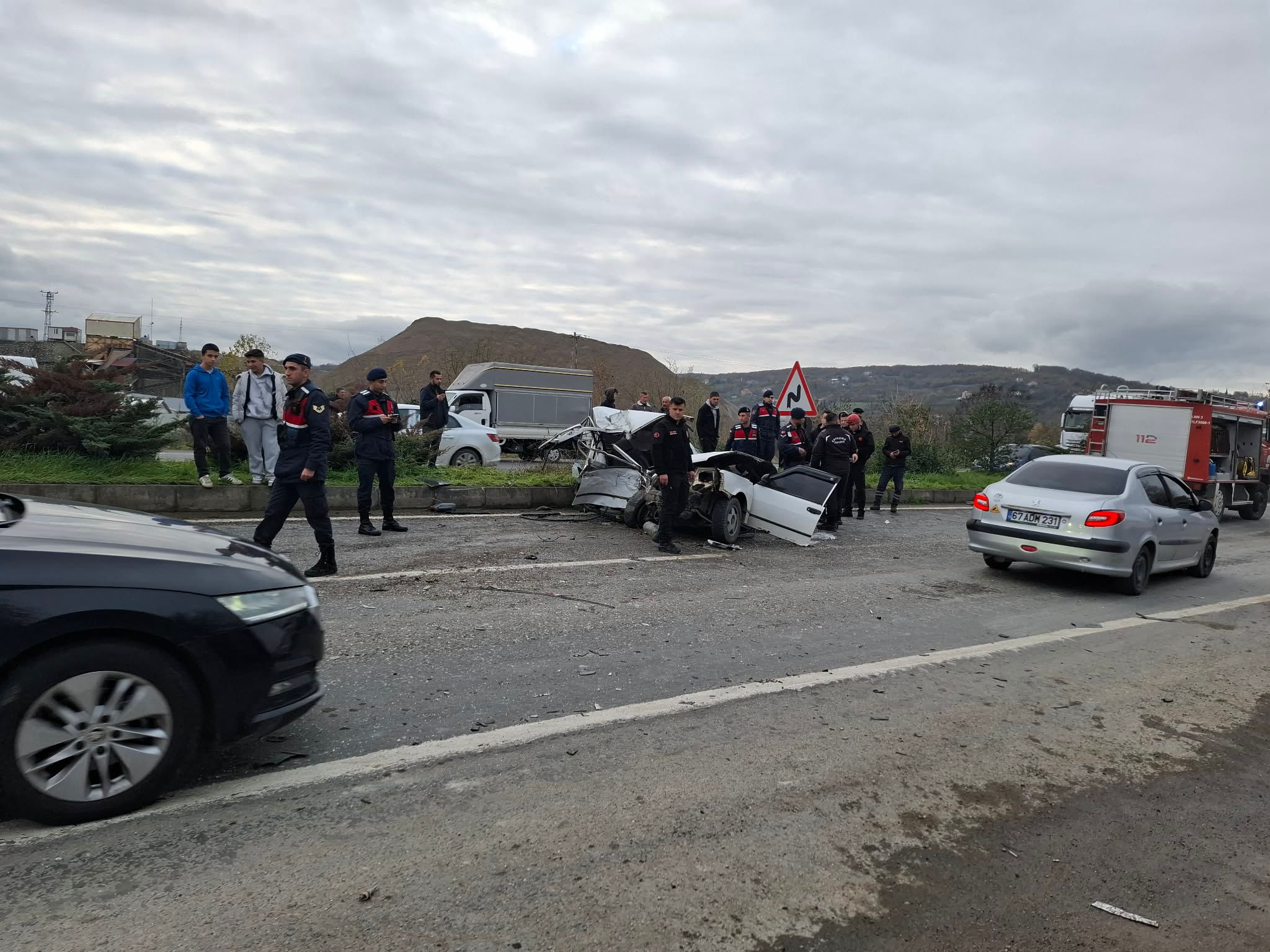 ZONGULDAK’ın Çaycuma ilçesinde, çakıl taşıyan kamyonla çarpıştıktan sonra ikiye bölünen otomobilin sürücüsü Volkan Ergin (33) hayatını kaybetti, araçta bulunan 2 kişi de ağır yaralandı.