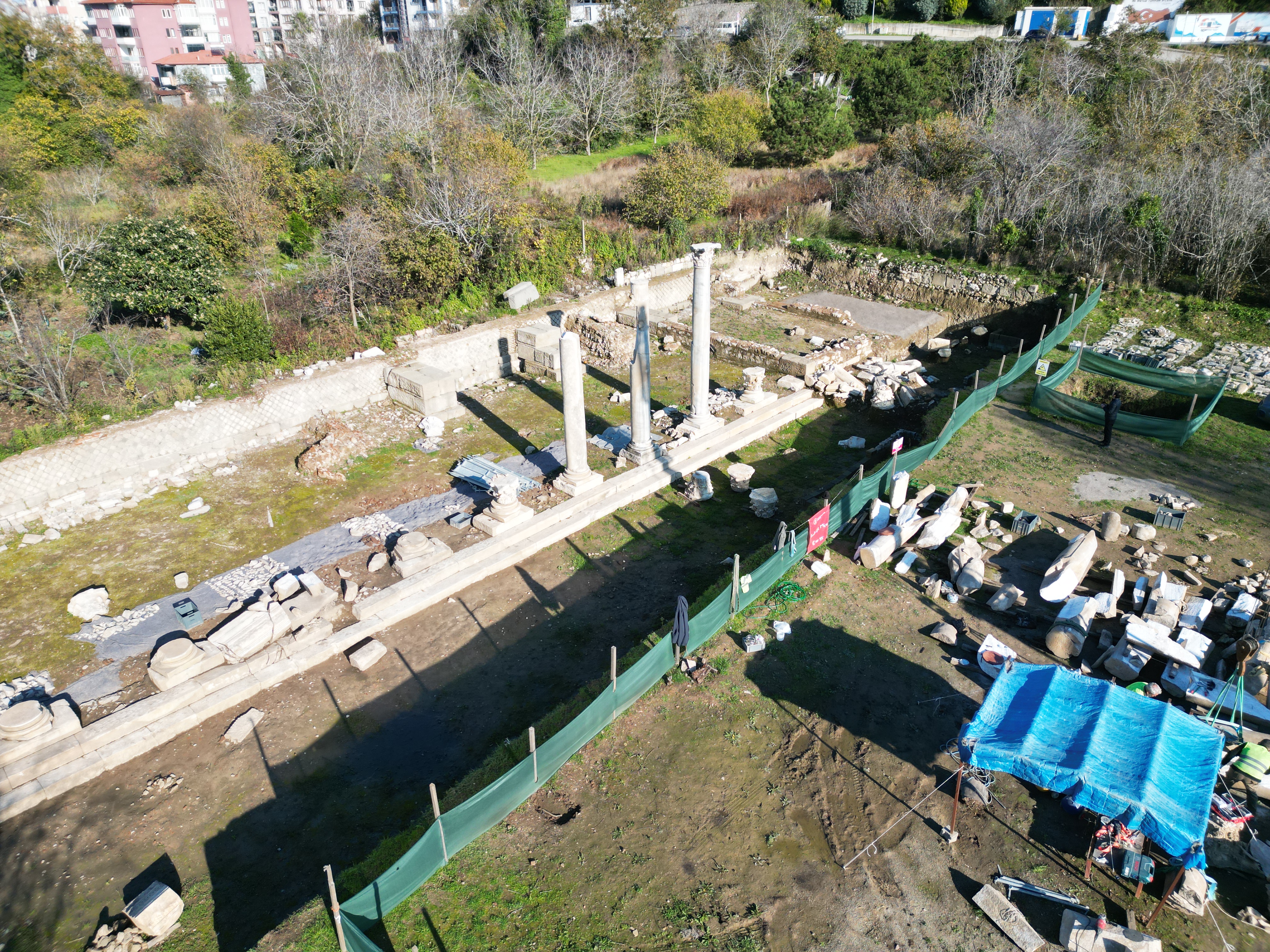 “Okul inşaatının temel açma çalışmaları sırasında mermer sütunların bulunmasıyla buradaki çalışmalar başladı. 2022 yılında Amasra Müze Müdürlüğü'nün kurtarma kazısı ve 2024 yılında Cumhurbaşkanlığı kararı ile bilimsel kazı alanı ilan edildi. 2025 yılında Kültür ve Turizm Bakanlığı Müzeler Genel Müdürlüğü’nün ‘Geleceğe Miras’ projesi kapsamında çalışmalarımız sürüyor. 2022'de başlayan kurtarma kazısından bu yana buradaki amacımız Roma dönemine ait tamamı mermer sütunlardan yapılan stoa yapısını ortaya çıkarmaktı. 2024 yılında bu yapının 3 sütunu ayağa kaldırıldı. 2025 yılında ise yapının batı tarafında bulunan alanda tüm sütun parçaları ve mimari üst yapı blokları da alandan çıkartılarak birleştirilme aşamasına geçildi. Bu çıkan eserlerden anlıyoruz ki, M.S. 2’nci yüzyılın ortalarına tarihlenen bu yapının görkemli bir Roma portikası olduğu, korinth düzeninde yeşil sütunlu üst yapı parçalarıyla birlikte ince işçiliğin olduğu, dönemine göre anıtsal bir yapı olduğunu söyleyebiliriz. 2025 yılında alanda bulunan eserler sergileme alanına yerleştirildi. 2026 yılında da alanın ören yeri ilan edilmesiyle bu alanın yerli ve yabancıların ziyaretine açılmasını planlıyoruz.