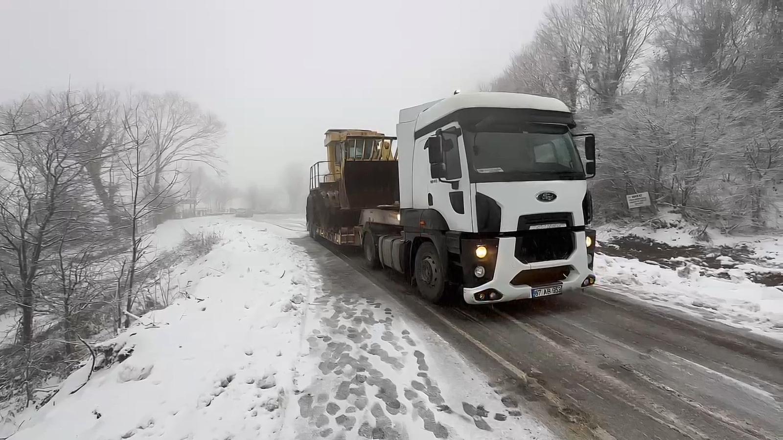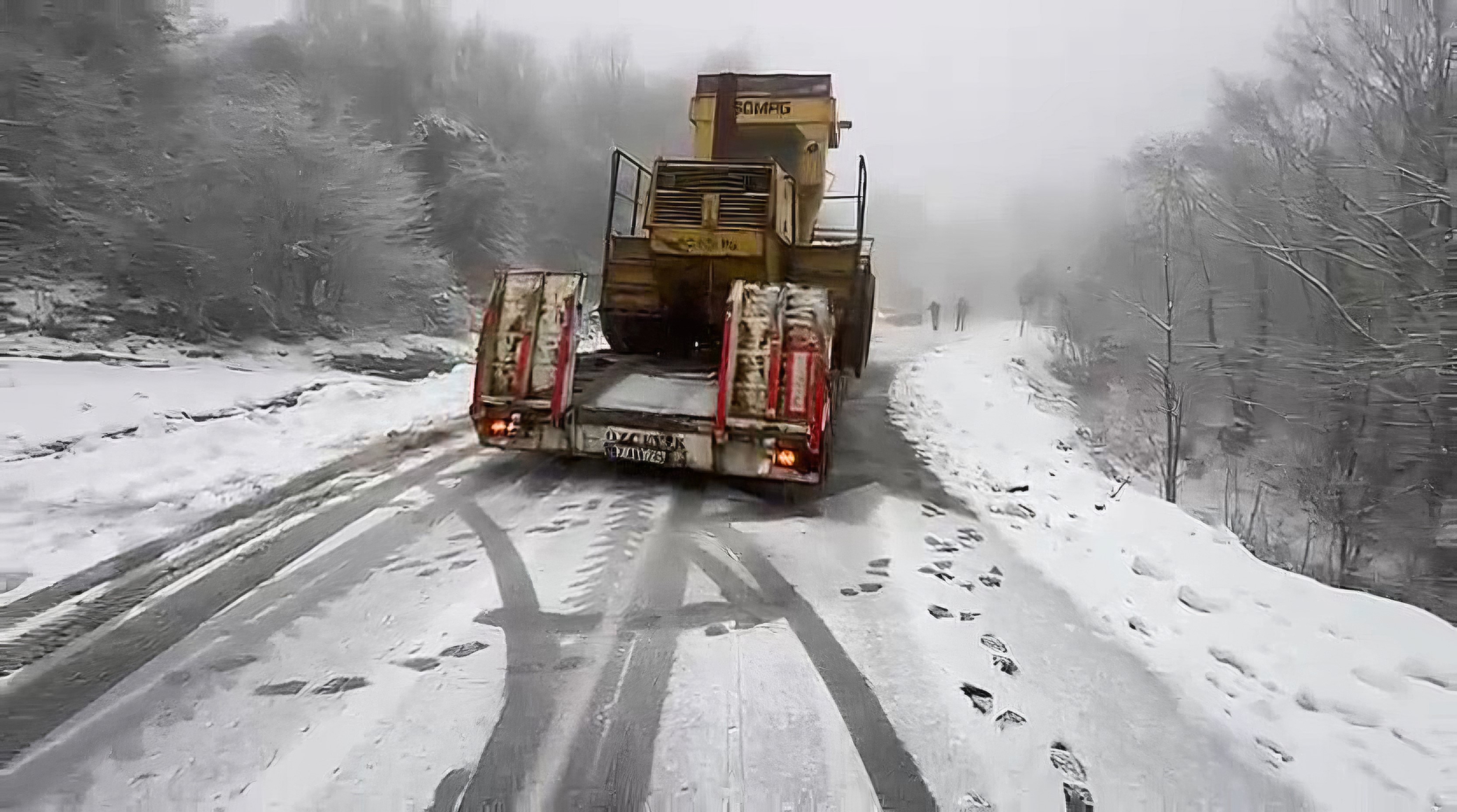 Zonguldak'tan Bartın'daki Çöp Depolama ve Geri Dönüşüm Tesisi'ne iş makinesi taşıyan bir tır, yoğun kar yağışı ve buzlanma nedeniyle kayarak yolu ulaşıma kapattı. Bartın -Amasra eski kara yolu Kazpınarı köyü mevkisinde meydana gelen olayın ardından bölgeye jandarma ve karla mücadele ekipleri yönlendirildi. Yaklaşık 2.5 saat trafiğe kapatılan yoldaki tırı kurtarmak için iş makineleri ile yoğun bir çalışma başlatıldı. Jandarma ekipleri tarafından ise alınan güvenlik tedbirleri ile trafik tünel yoluna yönlendirildi. Kar küreme ve tuzlama çalışmalarının tamamlanmasının ardından üstünde iş makinesi bulunan tır, tesise ulaştırıldı.