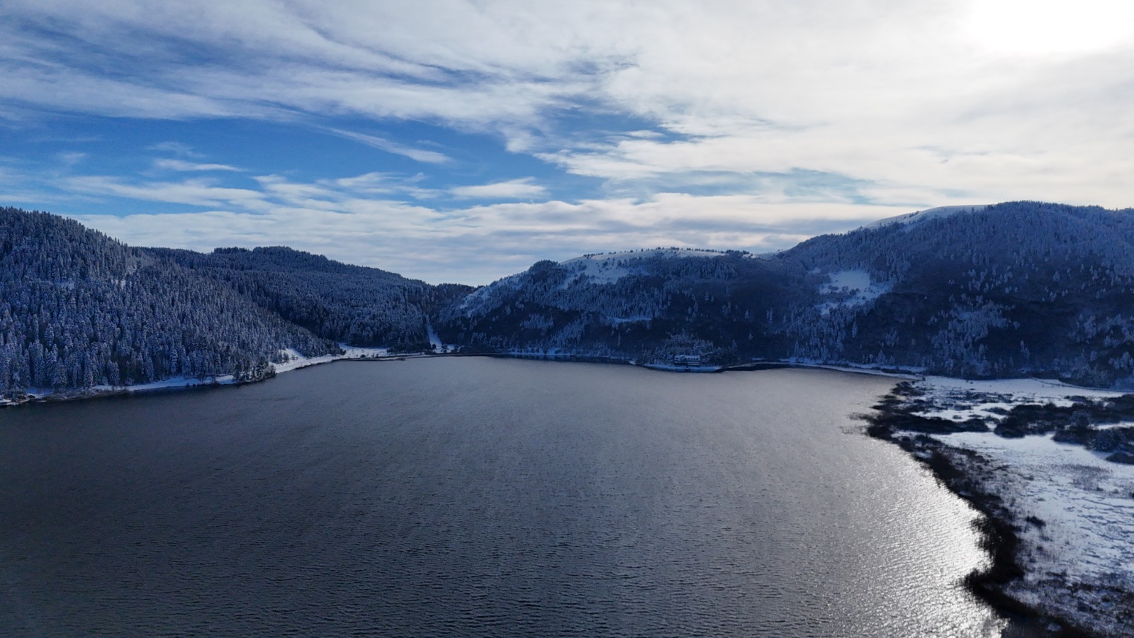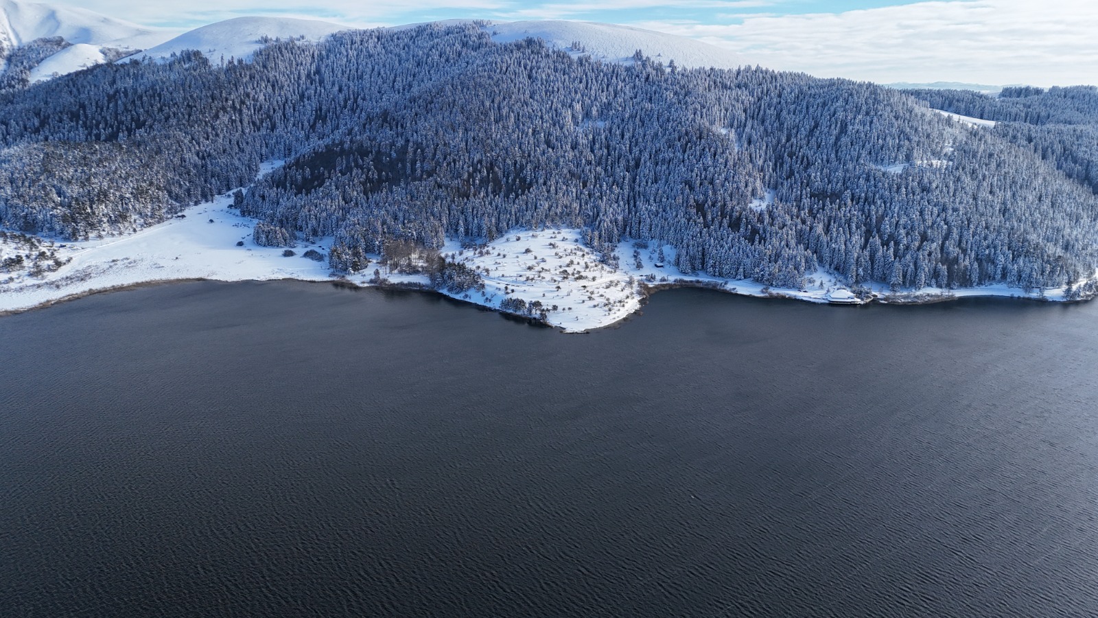 Beyaz örtüye bürünen Abant Gölü Milli Parkı'nın eşsiz manzarası dron ile görüntülendi.