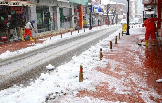 Bartın'ı etkisine alan kar yağışı sonrası ulaşıma kapanan 205 köy yolu açılırken, Bartın Belediyesi’ne bağlı yaya işçiler ve iş makineleriyle kent merkezinde ve mahallelerde taşıt ve yaya ulaşımının sağlandığı yol ve kaldırımlarda kar kürüme ve kaldırma çalışmaları yapmaya devam ediyor.