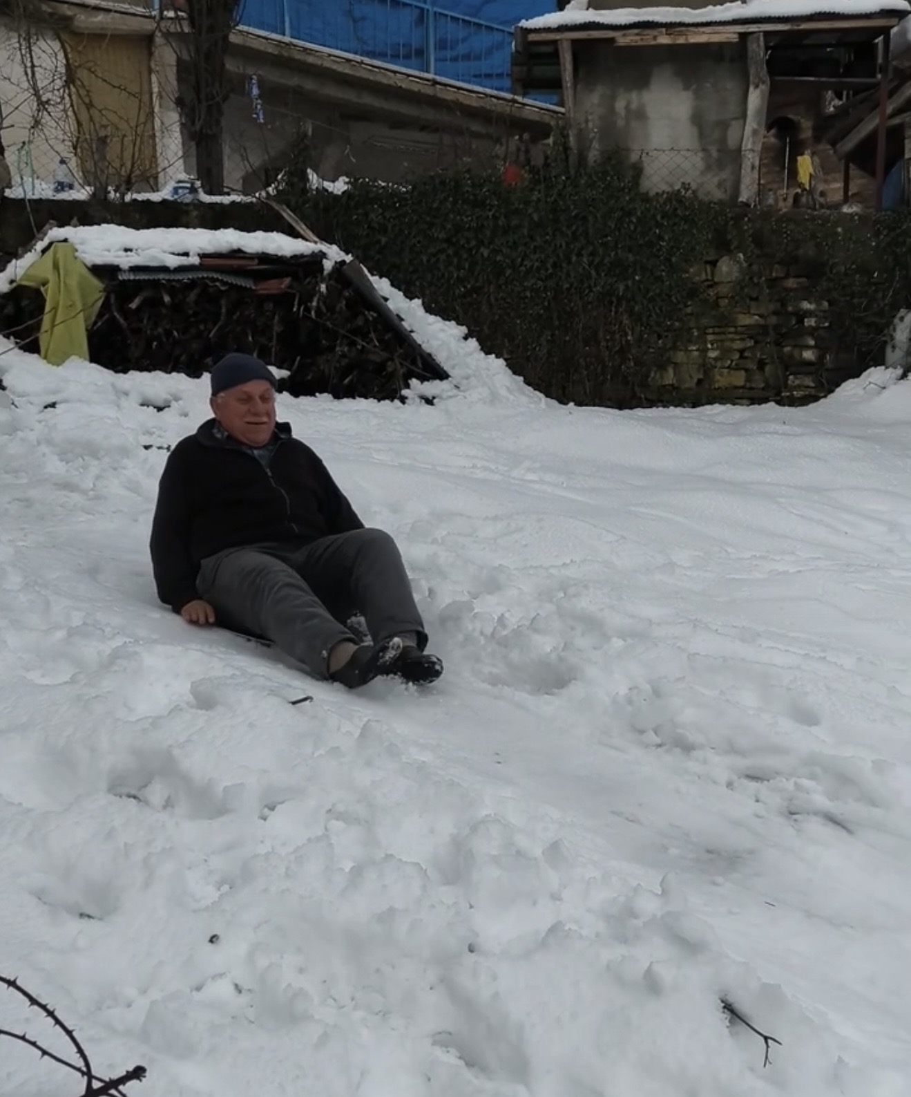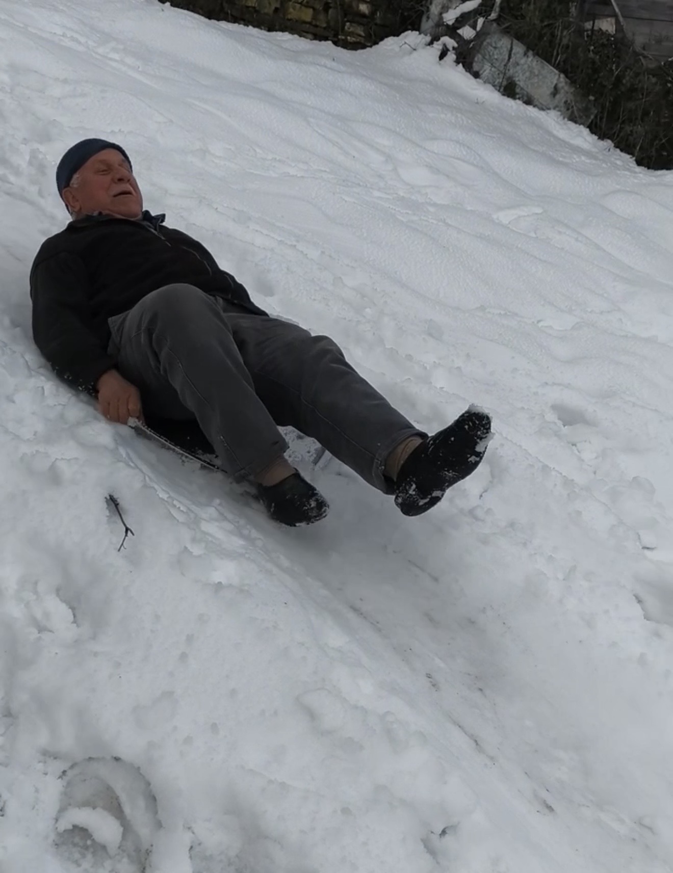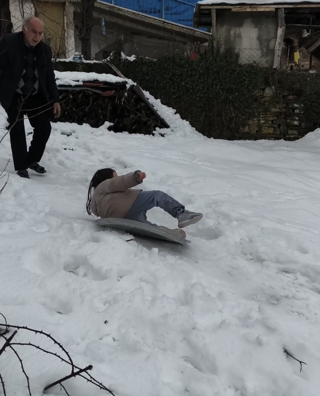 Kar yağışının durmasıyla köyde yaşayanlar, köy meydanındaki yamaçtan kayarak karın keyfini çıkardı. Yaşlı amcalar ve çocuklar, evlerinden getirdikleri naylon poşet ve tepsilerle yaklaşık 20 metrelik yamaçtan aşağı kaydı. Eğlenceli anlar, çevredekilerin cep telefonuyla görüntülendi.
