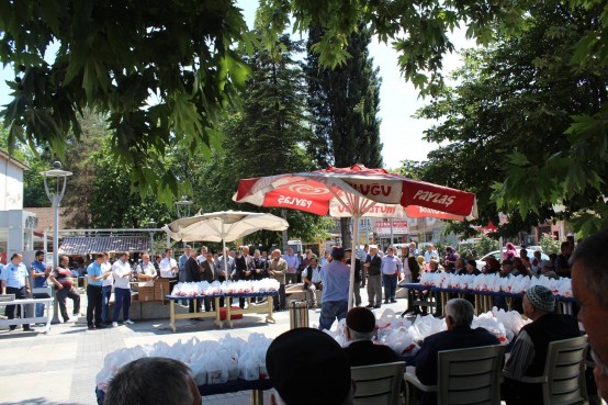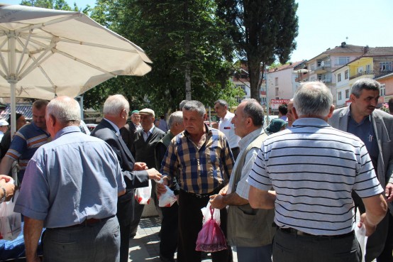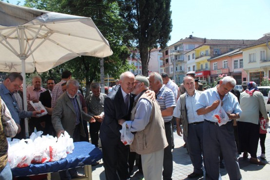 Kozcağız Belediye Başkanı Mustafa Karaman, Berat Kandili münasebetiyle vatandaşlara, Belediye önünde kandil simidi dağıttı.