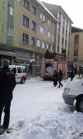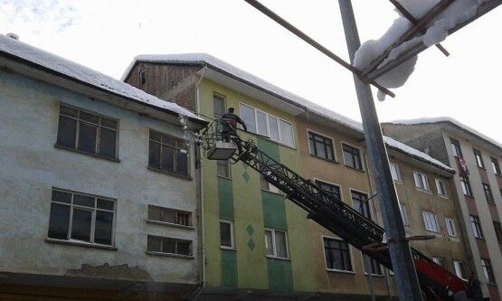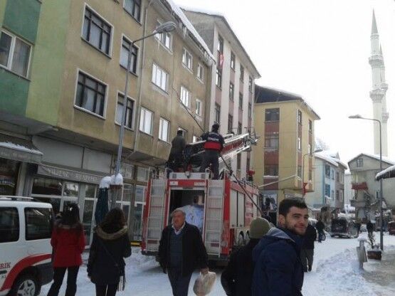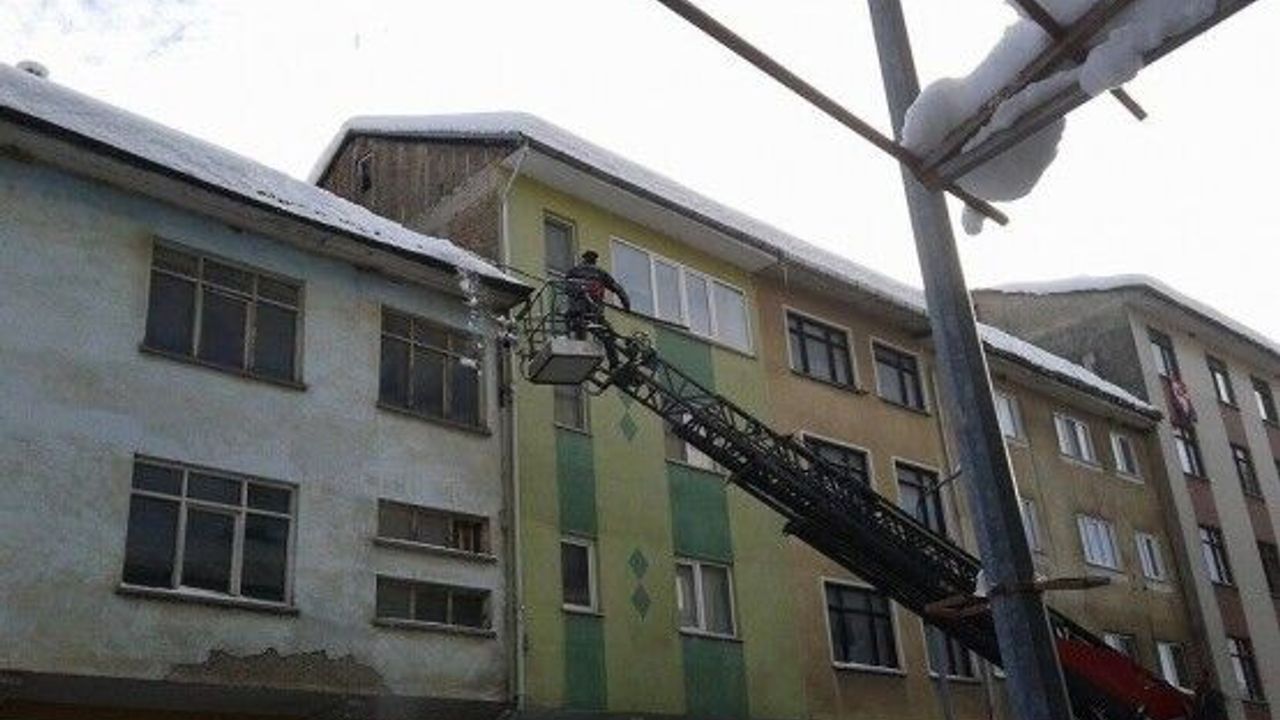 Kumluca Belediyesi kent merkezinde biriken buz sarkıtlarını itfaiye yardımıyla temizledi. Ayhan ACAR BARTIN DHA