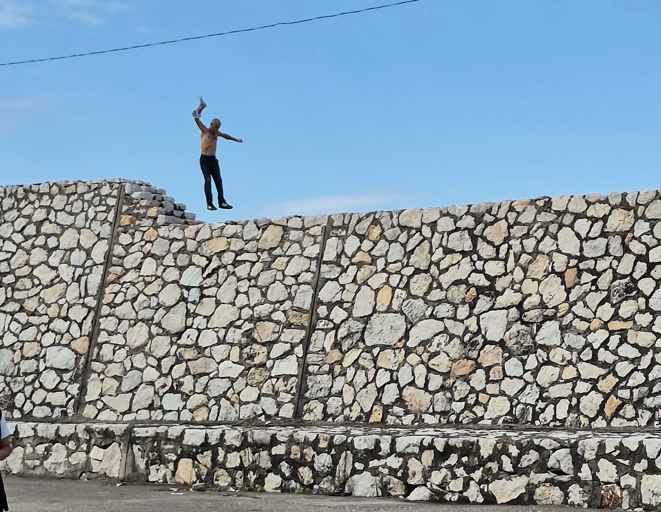 Kurucaşile ilçesinde yaşayan Tanju Işık, limanda mendirekler arasındaki yaklaşık 1.5 kilometrelik alanda delice koşarak, bir taraftan da kendi kendine konuştu.