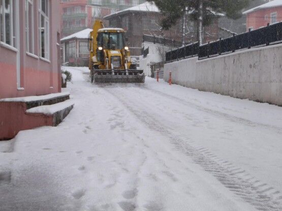 Kurucaşile Belediyesi'ne ait iş makinaları kar kürüme ve tuzlama çalışması yaparken, kar yağışı şirin ilçemize ayrı bir güzellik kattı.
