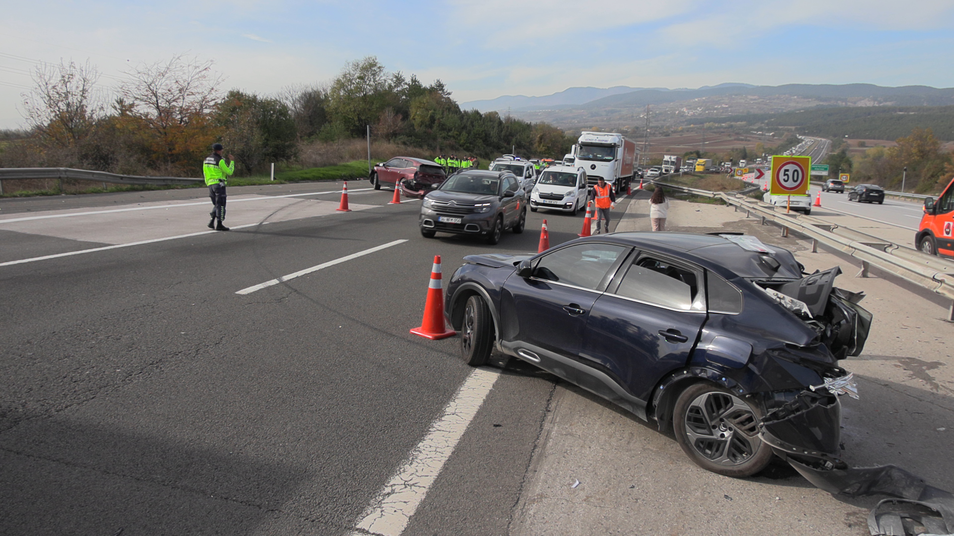 Kaza nedeniyle Anadolu Otoyolu’nun Ankara yönünde uzun araç kuyrukları oluştu. Araçların yoldan kaldırılmasıyla ulaşım normale döndü.